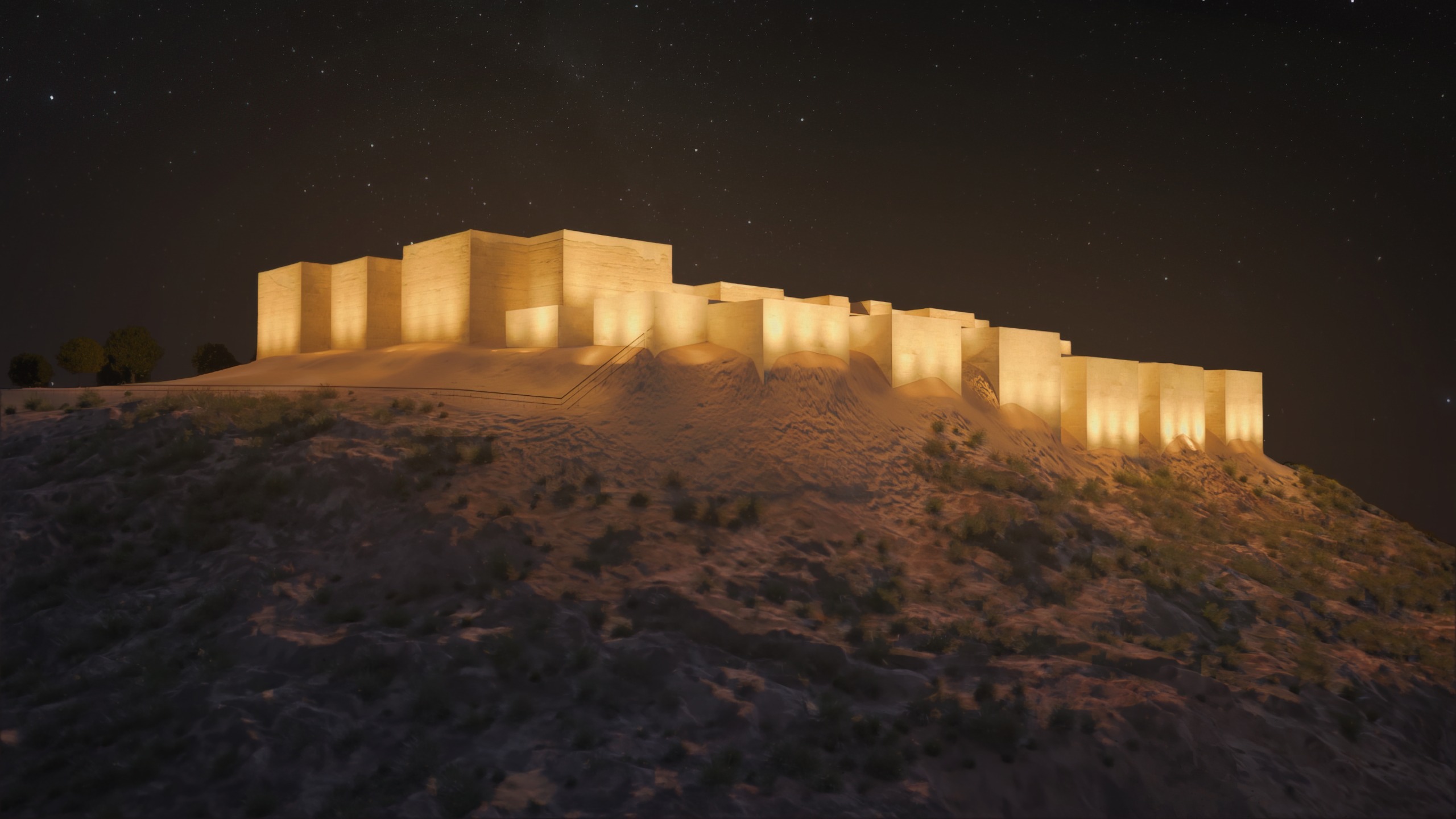 Todos los elementos han sido fabricados en materiales de alta resistencia, como el acero galvanizado y el inoxidable, preparados para soportar condiciones extremas y ambientes salinos. Además, se han diseñado para integrarse con la arquitectura de tapial y piedra, de modo que el sistema se mimetice con el monumento y no altere su aspecto original. Gracias a la tecnología LED, se asegura un consumo mínimo, una larga durabilidad y un bajo impacto ambiental, alineando la recuperación patrimonial con criterios de sostenibilidad.