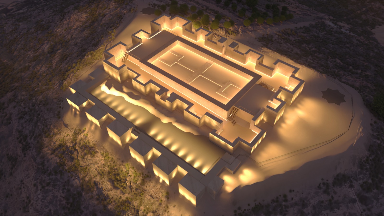 El Palacio de Ibn Mardanís contará con un sistema de iluminación monumental de última generación, diseñado para resaltar su valor histórico y patrimonial, convirtiéndolo en un icono visible en el ‘skyline‘ nocturno de Murcia. En total, se instalarán 914 luminarias LED de bajo consumo para poner en valor la arquitectura del recinto superior, reforzar la seguridad de los visitantes y garantizar un uso eficiente de la energía.