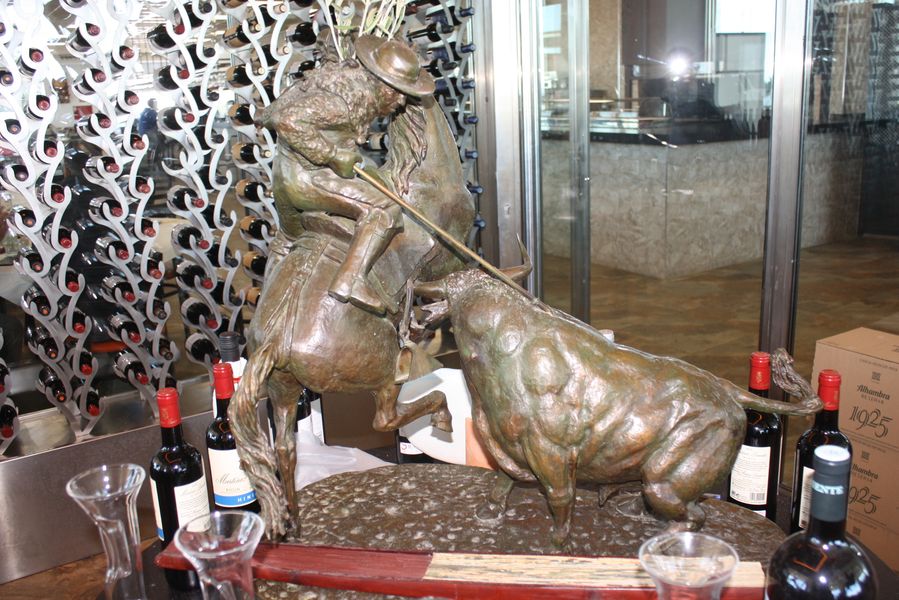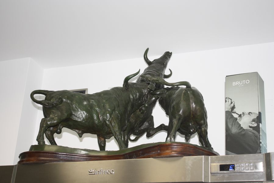 Mientras tanto, en diferentes zonas del restaurante, encontramos una impresionante colección de esculturas taurinas de bronce, obras de Soriano adquiridas en Toledo, custodian el espacio con la serenidad de quienes han visto pasar décadas de historias.