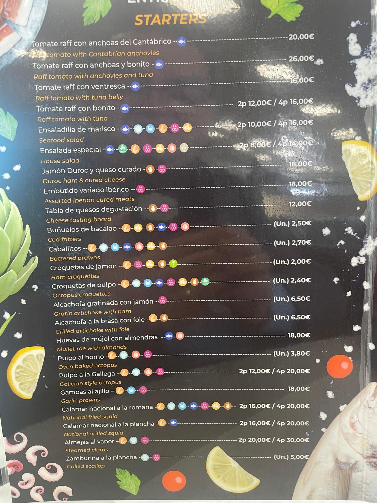 Para compartir —y celebrar—, la ensaladilla de marisco para dos (10€) y la ensalada especial (8€) rinden tributo a la tradición mediterránea con un toque de generosidad. Los amantes del buen jamón y el queso encuentran su paraíso en la tabla de Jamón Duroc y queso curado (18€) o en el embutido ibérico variado (18€), mientras que la tabla de quesos de degustación (12€) invita al descubrimiento.
