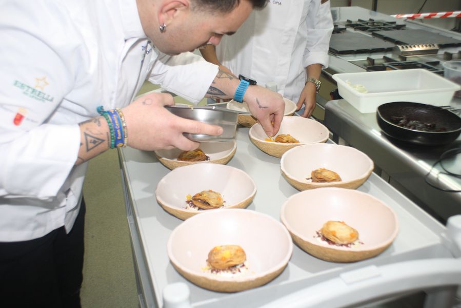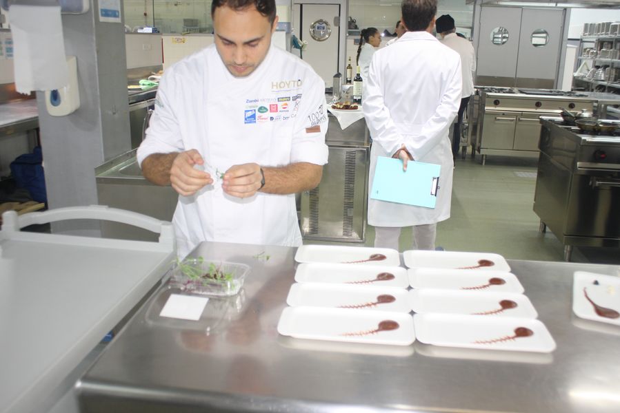 La competición ha dado comienzo a las 10:00 horas con la acreditación de los participantes y ha seguido un estricto orden de actuación. El restaurante Torremolinos, representado por Gustavo Alejandro y Mari Cruz Marco, ha sido el primero en presentar su propuesta ante el jurado a las 10:30 horas, tras acreditar su participación a las 9:30.