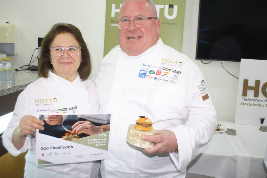 Tras la deliberación del jurado, el restaurante Torremolinos se ha alzado con la victoria del III Campeonato Regional de Tapas, logrando así el derecho a representar a la Región de Murcia en el Campeonato Oficial de Tapas y Pinchos a nivel nacional. Gustavo Alejandro y Mari Cruz Marco han demostrado su talento culinario con una propuesta que ha convencido al jurado por su originalidad, técnica y uso de productos de la tierra.