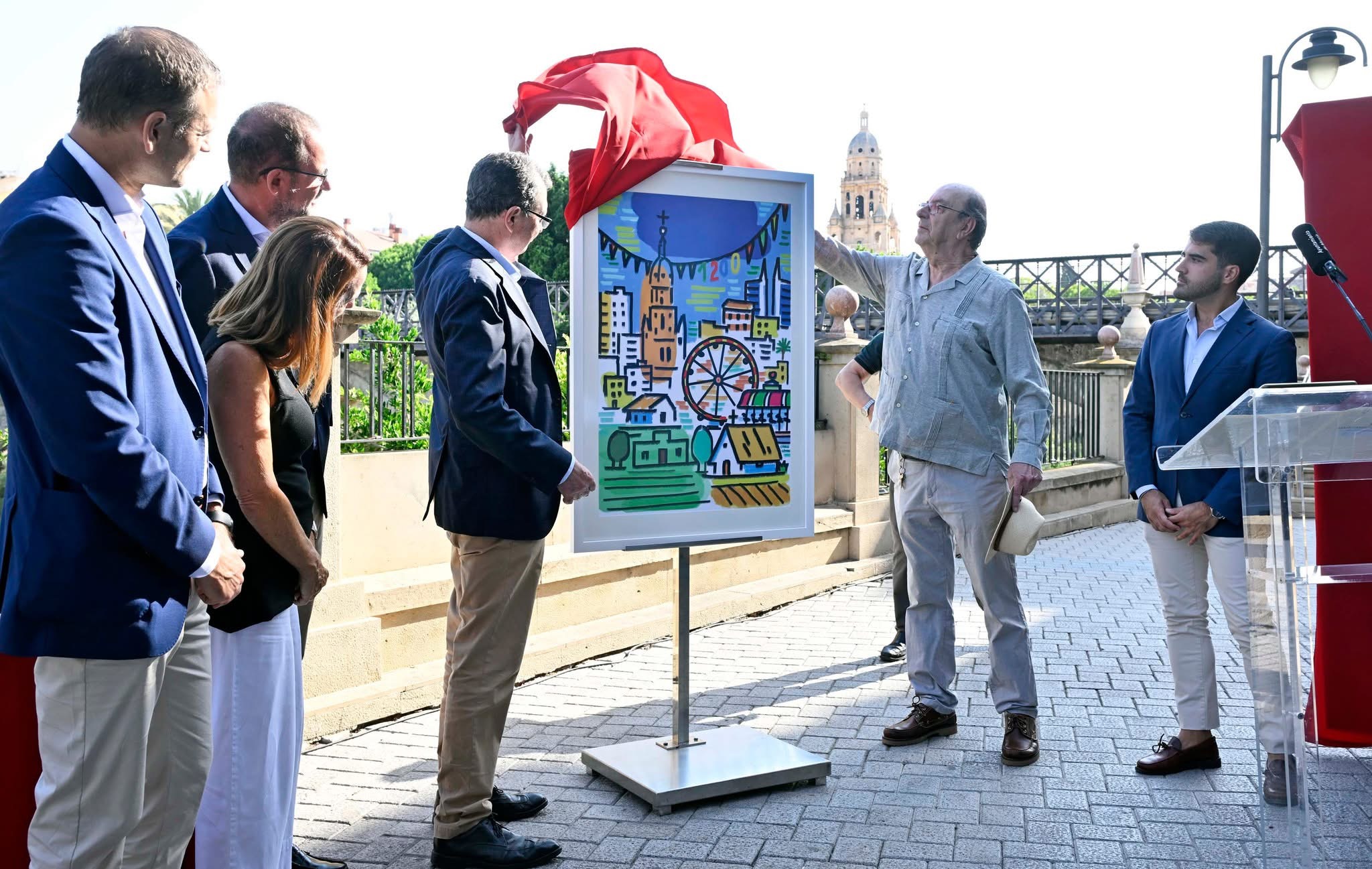 El alcalde de Murcia, José Ballesta, ha destacado en esta presentación del cartel «el dominio de los tonos azules que representan el cielo de Murcia en el mes de septiembre. Un cartel que, en su conjunto, logra transmitir la identidad, la celebración, la tradición y los valores claves de la feria de Murcia, celebrando el espíritu de toda una ciudad».