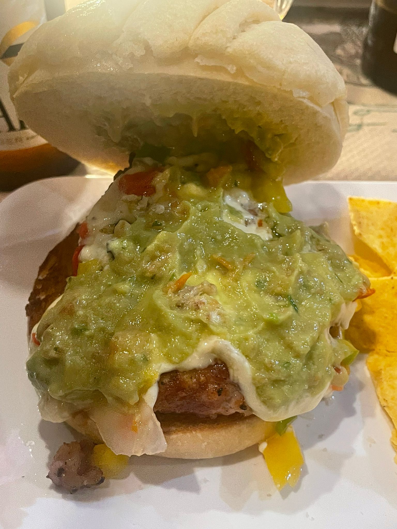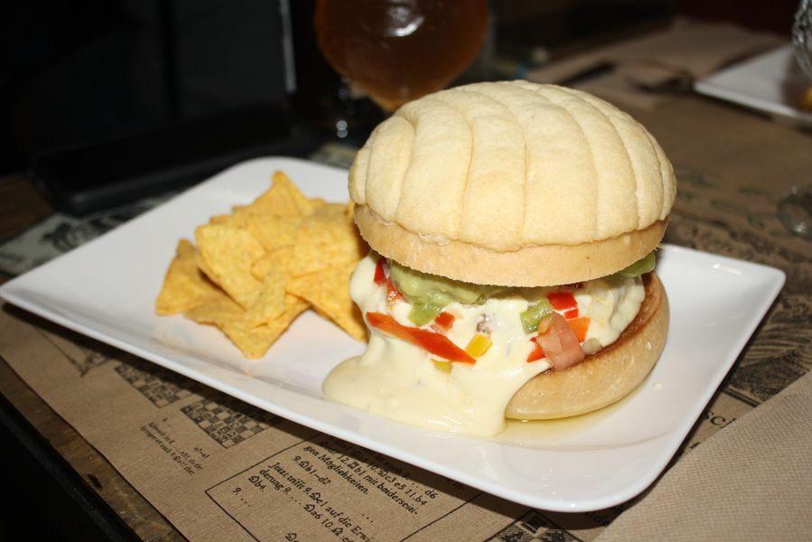 La “Rock Culture Burger” se compone de pollo de corral, coronado con una salsa de queso Gouda infusionada con romero, un vibrante pico de gallo con habaneros, y un guacamole tradicional mexicano, todo ello encajado entre un pan dulce tipo concha, especialmente elaborado para la ocasión por Pedro, de la Panadería La Subirana de Molina de Segura. Su corteza crujiente y su miga tierna, con un toque azucarado, aportan un contrapunto dulce que equilibra la intensidad de los ingredientes.