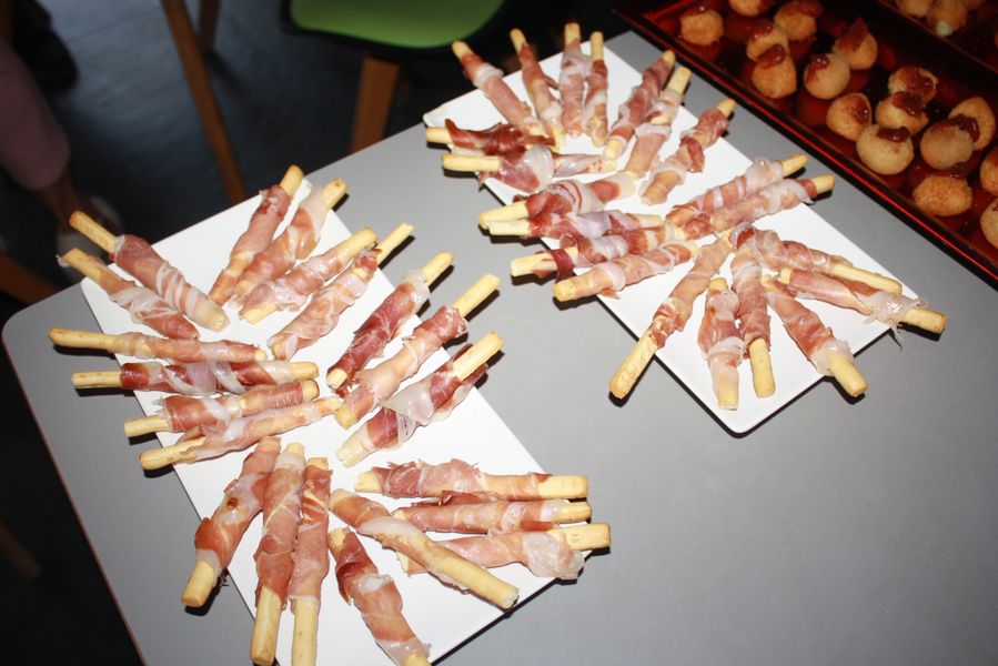 La velada, que comenzó a las ocho de la tarde y se prolongó hasta altas horas de la noche, fue un homenaje al sabor y al cariño. Los invitados disfrutaron de una cena fría abundante y variada: desde croquetas caseras y gildas hasta jamón enrollado en colines, burrata con anchoas y tomate cherry, ensaladilla rusa con mejillones, salmón, caballitos y mini pizzas. Todo acompañado de vinos, cervezas y refrescos, en un ambiente distendido y festivo.
