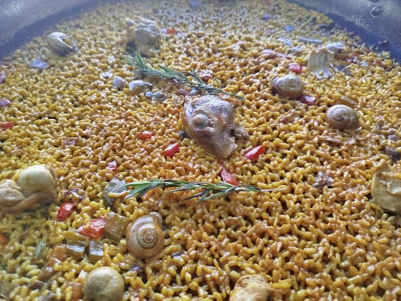 —Nuestro arroz de conejo y caracoles es, ante todo, de aquí —aunque también lo es de allí, y de cualquier rincón levantino. Lo elaboramos con respeto a su historia: los ingredientes principales son los mismos que en un arroz del Campo de Cartagena, de la Vega Baja o de Pinoso —con ligeras variaciones, sí, porque no somos dogmáticos. La cocina está viva: se mueve, evoluciona, y busca siempre la mejora del resultado final.
