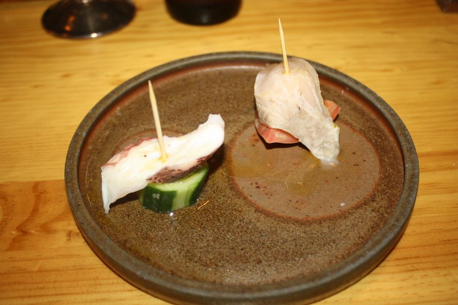 El menú comenzó con un plato fresco y contundente a partes iguales: bonito de Mazarrón de almadraba, servido con tomate local, pulpo de Cartagena y pepino tipo holandés cultivado en Murcia, una introducción perfecta para entender cómo Makoto reinterpreta la cocina japonesa con ingredientes autóctonos sin perder su esencia.