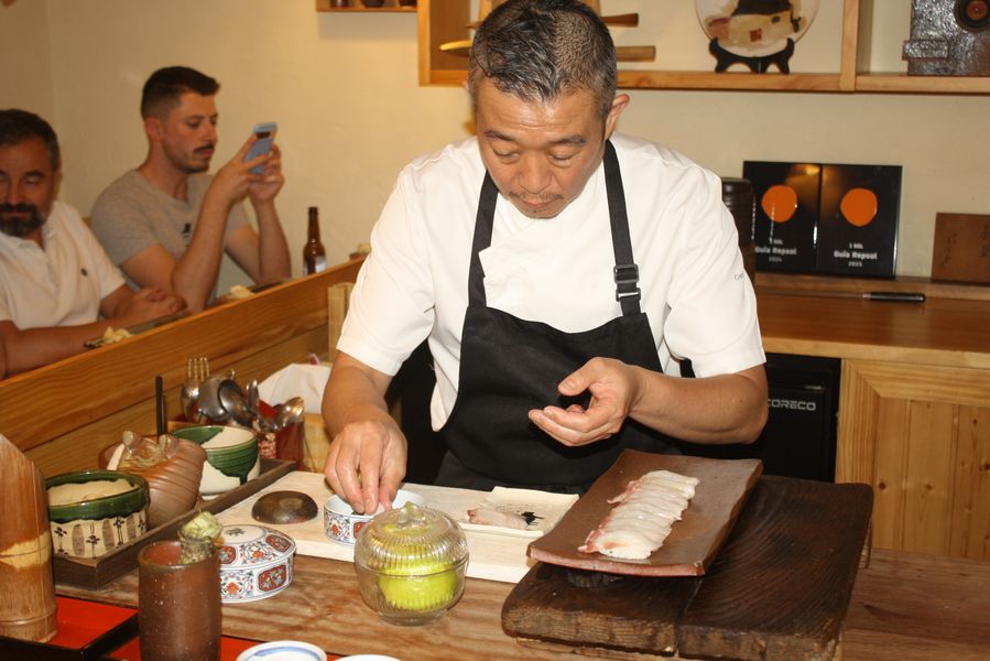 LasGastrocronicas.com visitó recientemente este santuario de 14 asientos —y una lista de espera que ahora alcanza a quienes se apuntaron en 2022— para vivir en primera persona lo que muchos definen como una experiencia casi espiritual. Allí, el chef Makoto Himeno, nacido hace unos 50 años en Kumamoto (Japón), oficia cada servicio como si fuera un ritual budista, con precisión quirúrgica y un respeto absoluto por el producto.