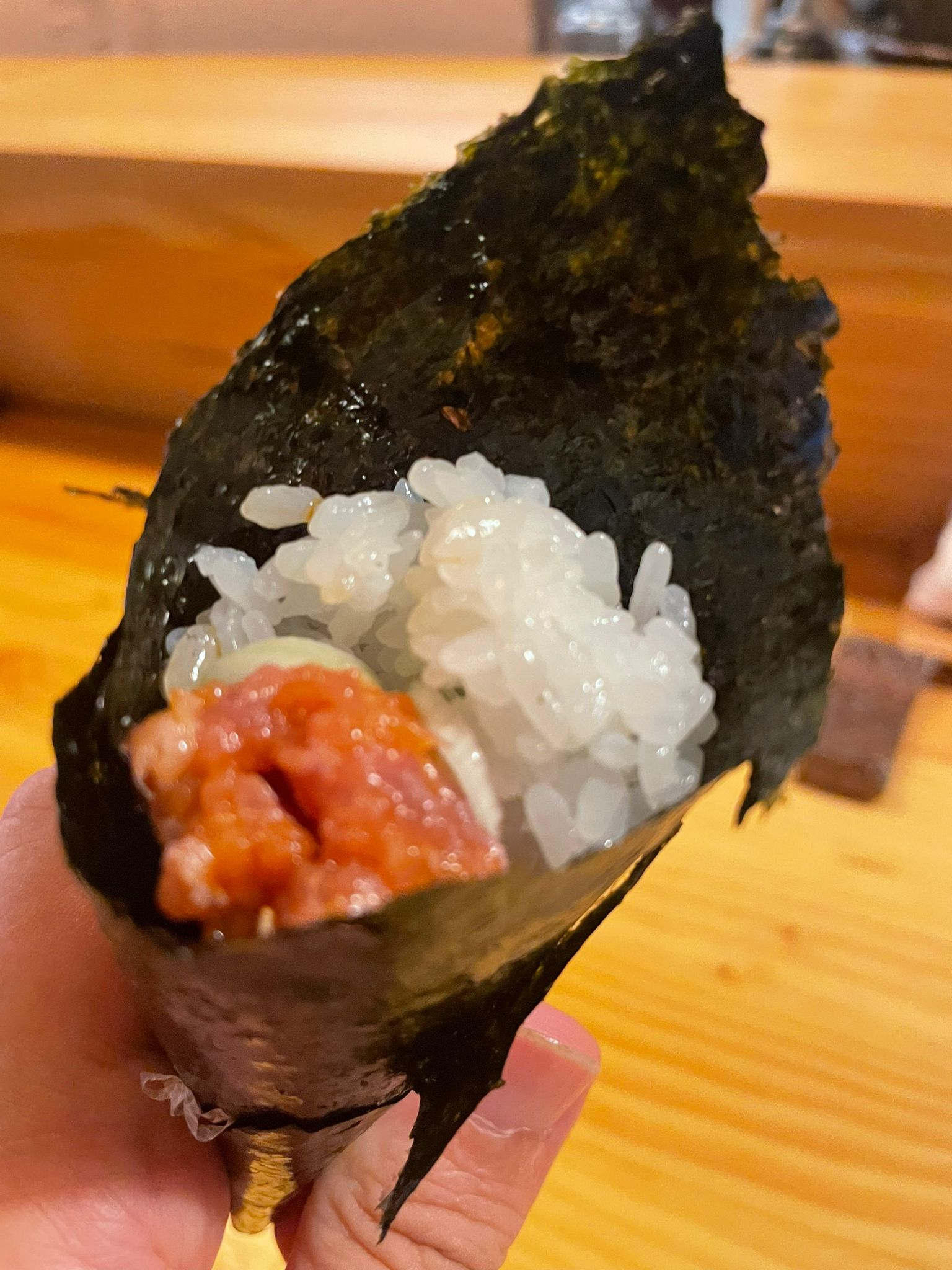 La propuesta 12º fue un Temaki, de tartar de atún rojo, servido en un cucurucho de alga.