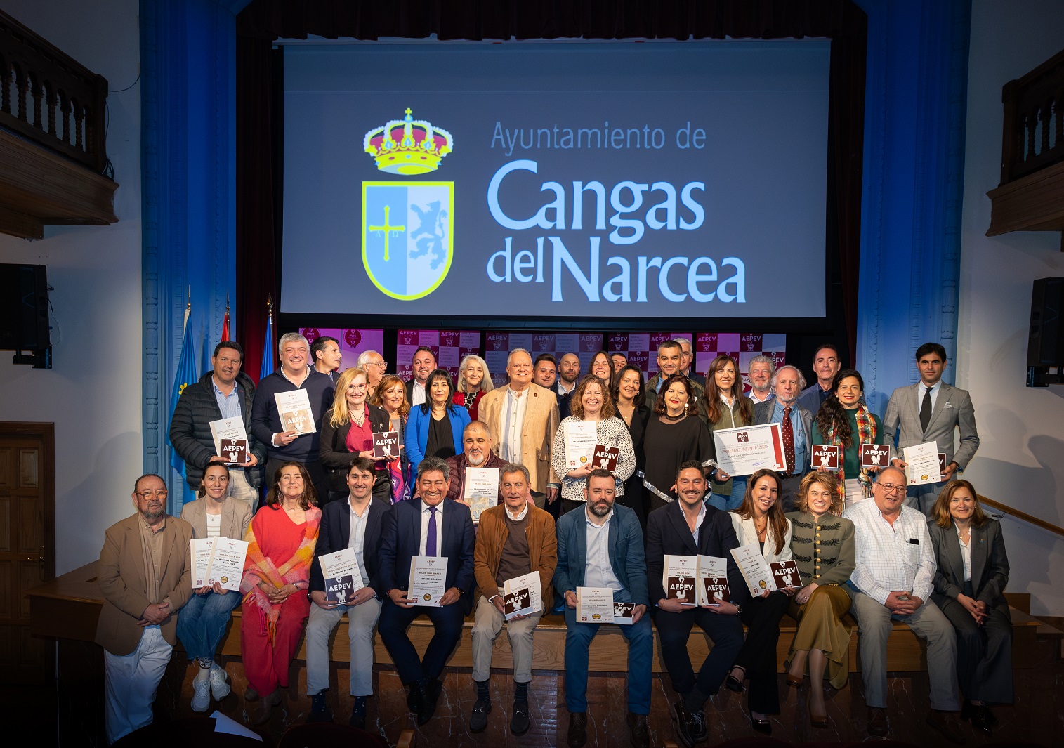 Cangas del Narcea fue el lugar elegido por los periodistas de la AEPEV (Asociación Española de Periodistas y Escritores del Vino) para el acto de entrega de los premios que anualmente convocan. En su XVIII edición, el evento reunió a una veintena de bodegas galardonadas en 15 categorías. Fue una gala repleta de alegría y reconocimiento por el encuentro con bodegueros de los cuatro puntos cardinales de España, elaboradores de los mejores vinos. Estefanía Rodero, directora general de Pago de los Capellanes, recibió el Gran Premio AEPEV 2025, por su vino Pago de los Capellanes Crianza 2023 (Ribera del Duero).