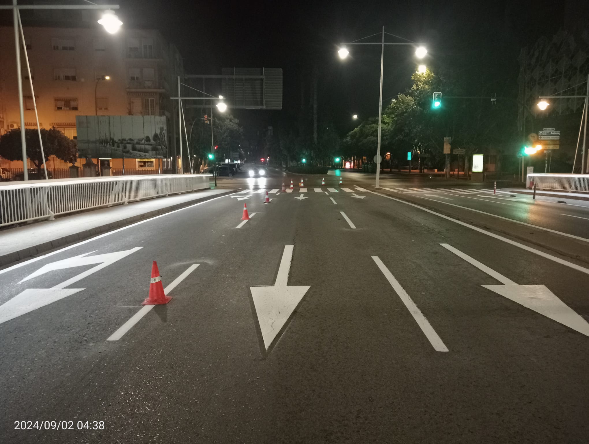 De esta forma, se ha procedido al repintado y refuerzo de la señalización horizontal en avenidas como Primero de Mayo y el entorno del Río Segura, que servirá de eje conductor de la Feria, acompañando estas actuaciones con una mejora en la vertical.