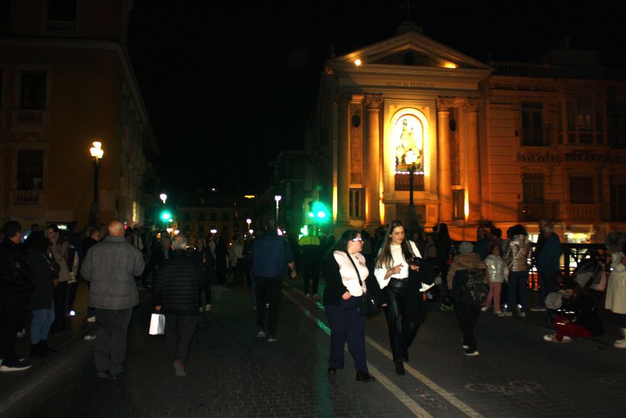 El itinerario tradicional se cumplió puntualmente. La comitiva penetró en la urbe a través del barrio del Progreso, atravesó la Ronda Sur y, pasadas las seis de la tarde, hizo escala en la iglesia de Santiago El Mayor e Iglesia del Carmen antes de alcanzar su destino final: la Santa Iglesia Catedral.