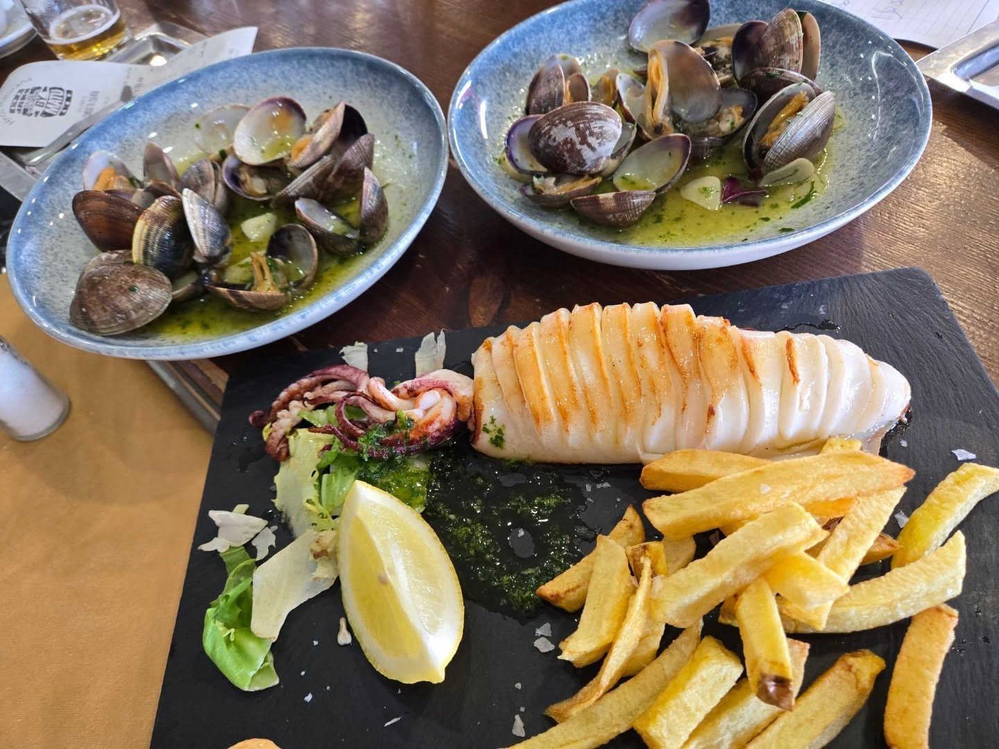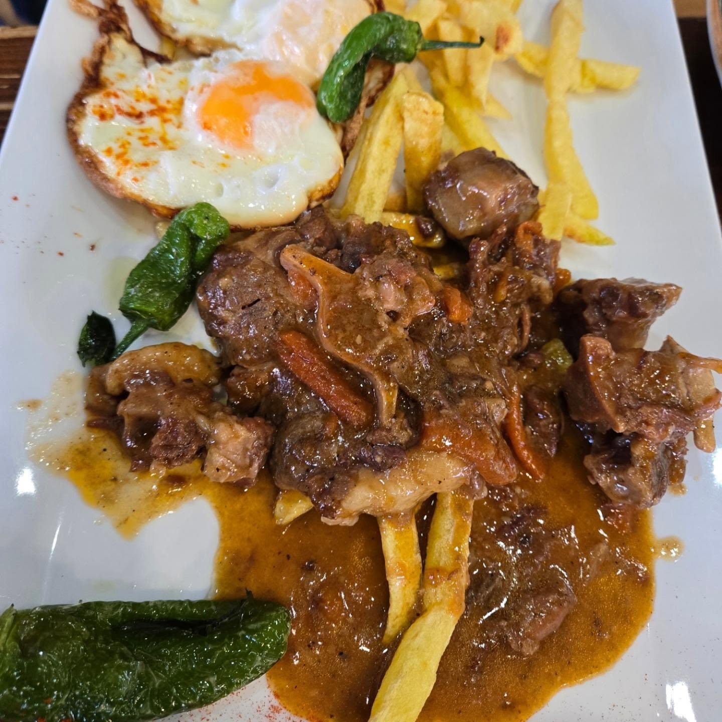 Las carnes a la piedra también son un referente: pluma, presa, chuletón de vaca vieja y el confit de pato comparten protagonismo con las costillas a la barbacoa. Y no pueden faltar los productos de Casa Santoña, que siguen siendo un pilar del local.