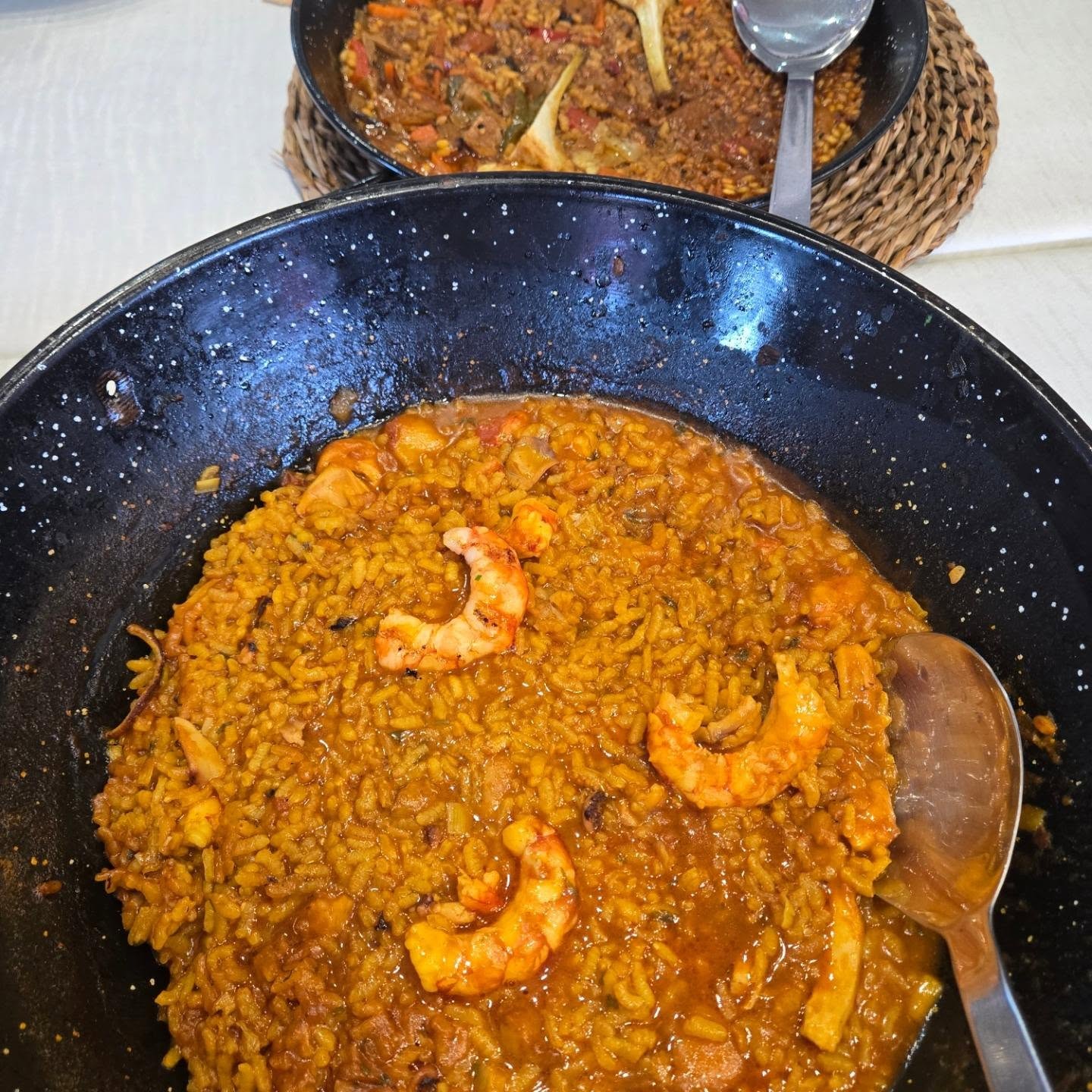 Además, el restaurante ofrece una amplia variedad de arroces, desde el arroz con bogavante y corvina hasta la paella de presa, foie, trufa y setas de temporada, pasando por el arroz negro en su tinta de calamar o el arroz de verduras.