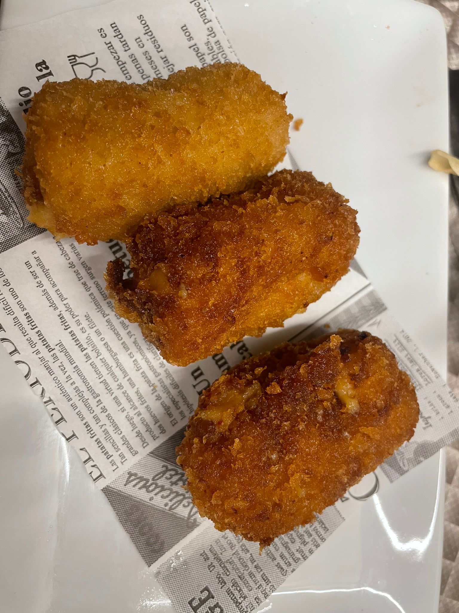 El picoteo es otra de las grandes fortalezas del local: desde montaditos de solomillo con foie y tomate hasta croquetas caseras de bogavante, gamba roja, chuletón, chipirón o boletus, pasando por tigres picantones, twisters de langostinos o caballitos en tempura negra de calamar.