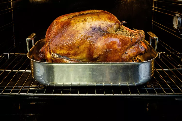 - A continuación, añadimos las manzanas cortadas en gajos y rellenamos el pavo. Cosemos la abertura con hilo de cocina para que no se salga el relleno. En cuanto al tiempo de horno, se calculan 45 minutos por cada kg de pavo y para evitar que se queme en exceso y se reseque, cuando lleve una hora y media en el horno, se puede cubrir la pechuga y las puntas de los muslos con una hoja de papel aluminio.