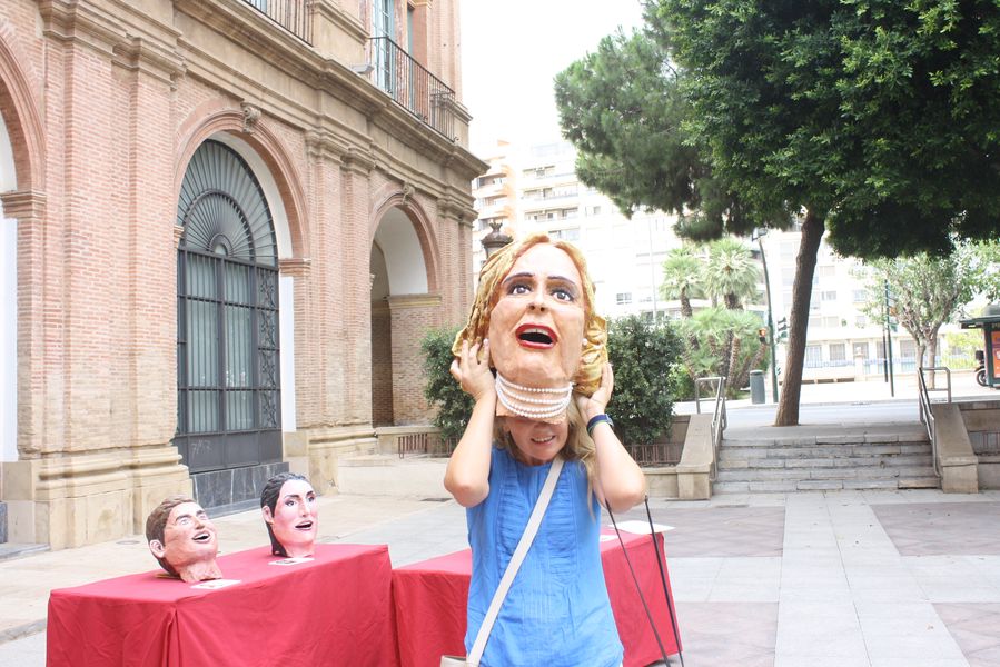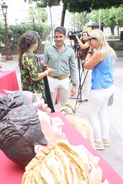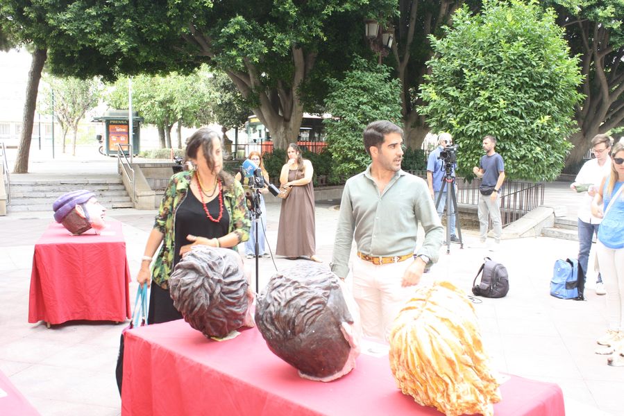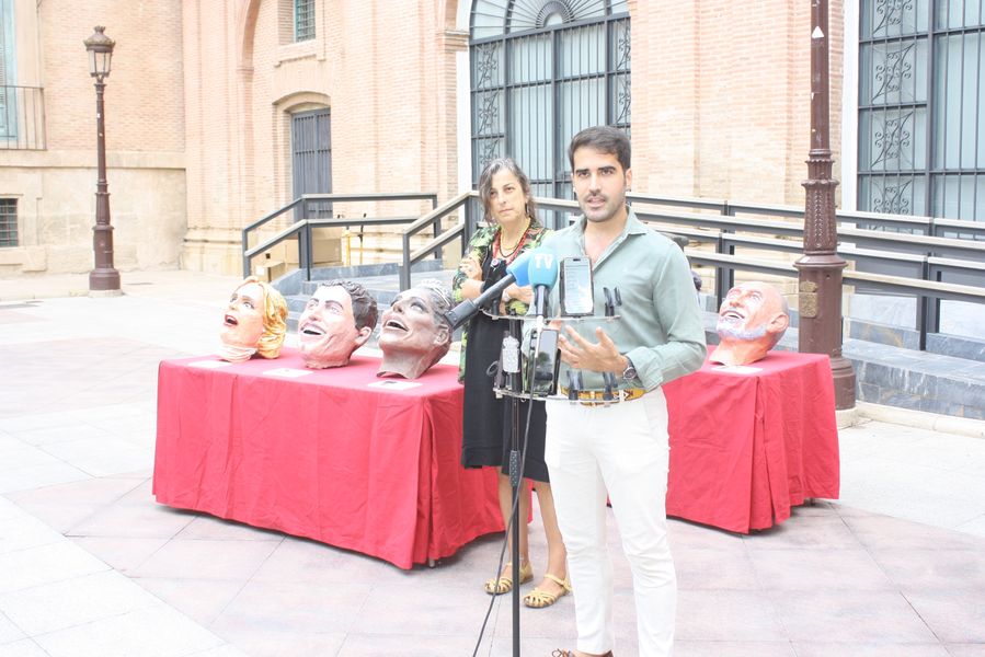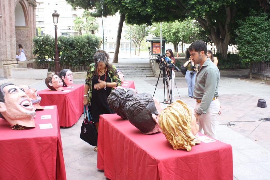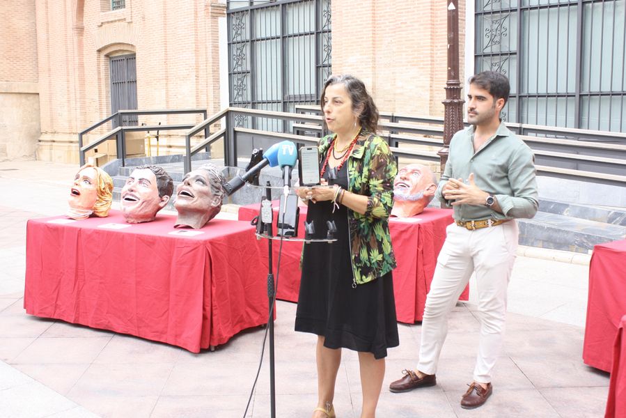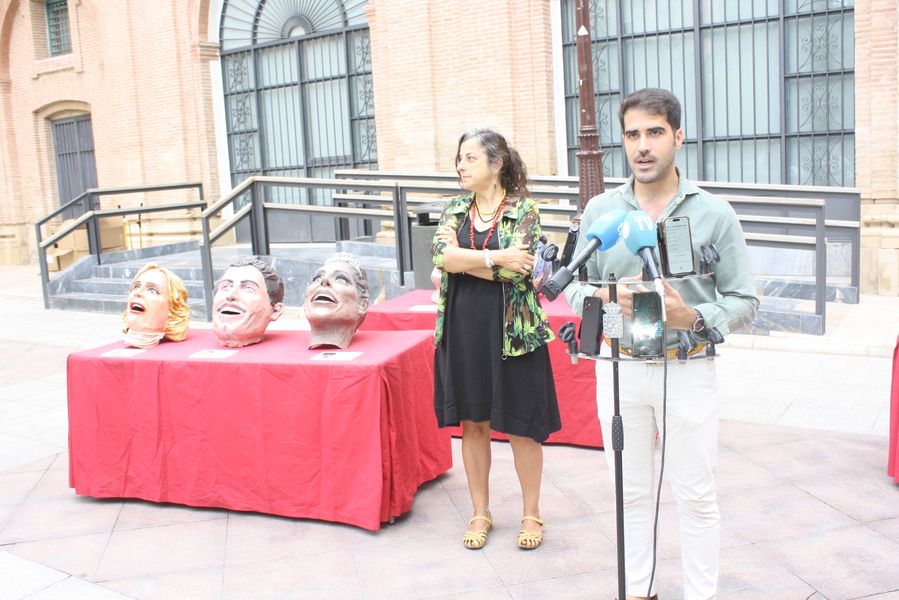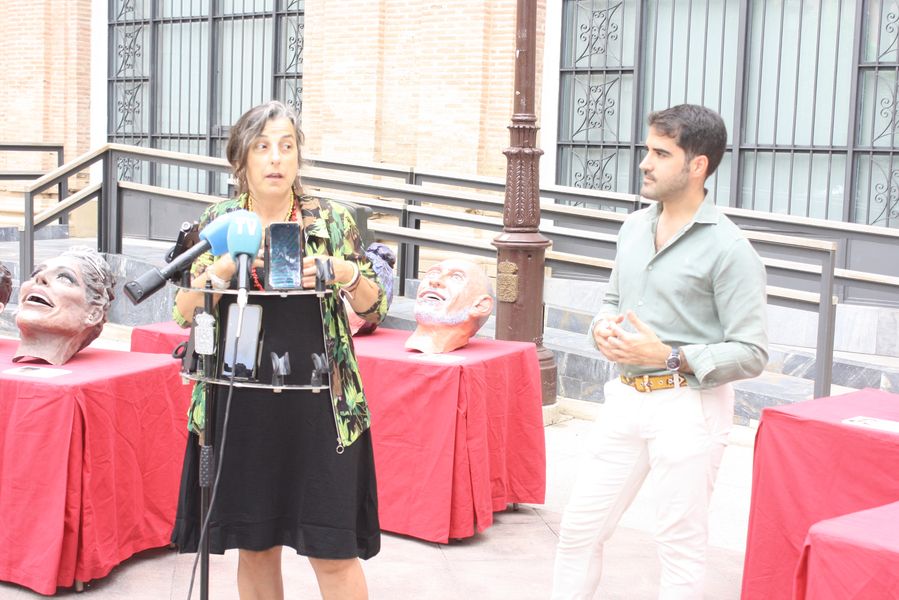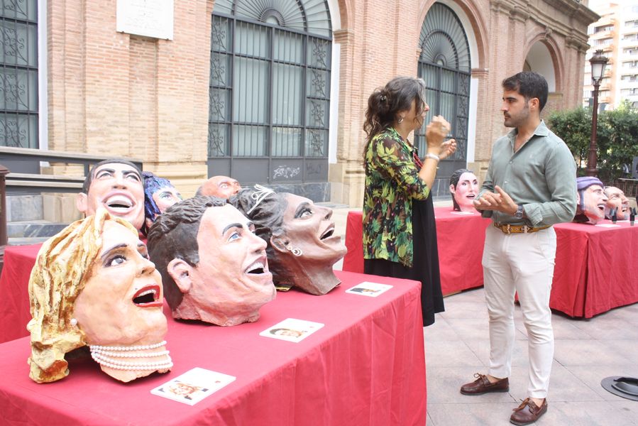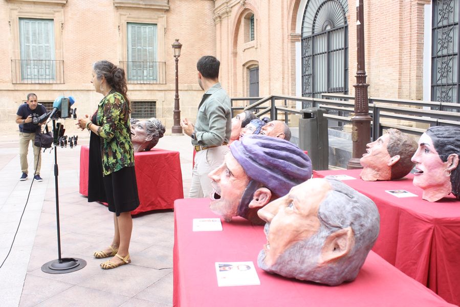 El concejal de Cultura e Identidad, Diego Avilés, y la Escuela de Arte de la Región de Murcia, representada por Carmen María Martínez Salazar, han dado a conocer esta colección formada por diez cabezudos caricaturizados de personajes emblemáticos de la Murcia actual.