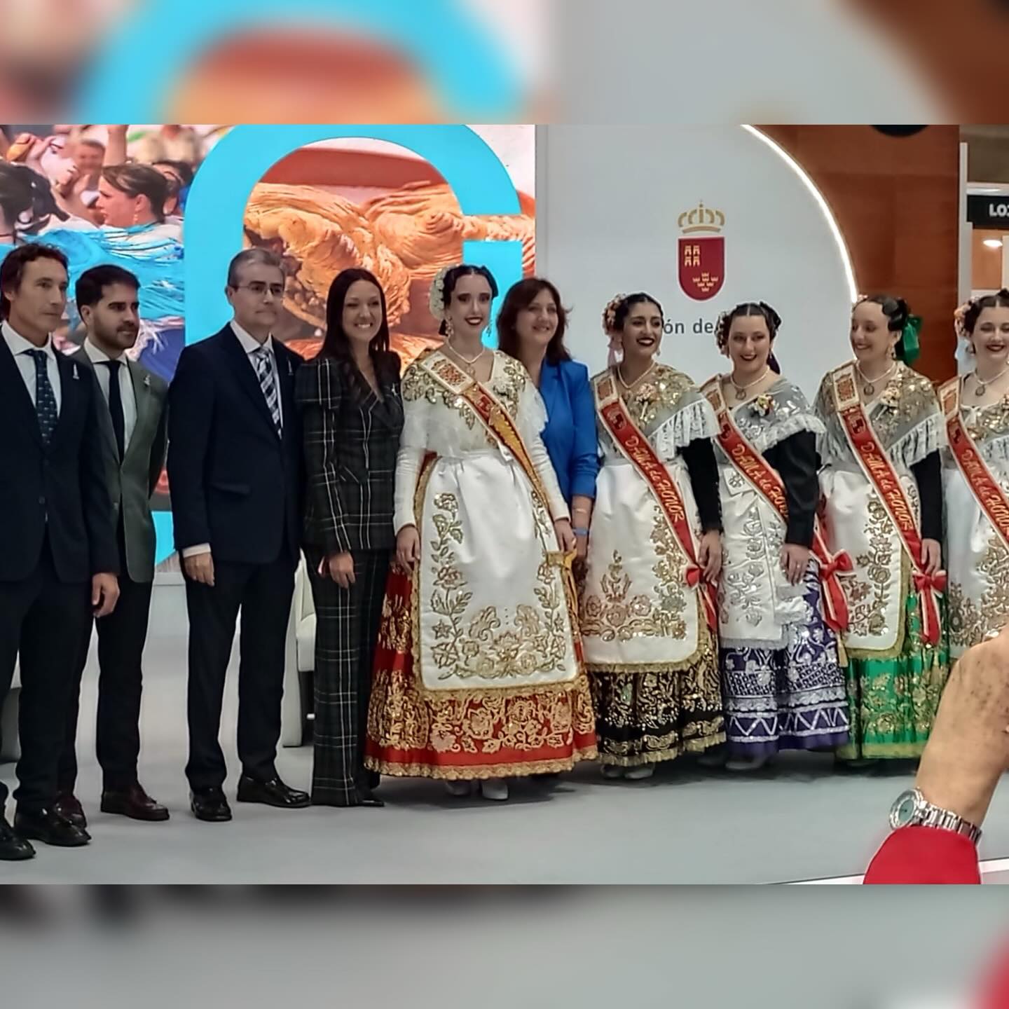 Pero la influencia de la comitiva no se limitó a ese espacio: recorrieron numerosos pabellones de comunidades autónomas y países participantes, generando admiración allá donde pasaban. Los trajes, bordados con esmero y lucidos con elegancia y solemnidad, se convirtieron en auténticos embajadores visuales de la identidad murciana.