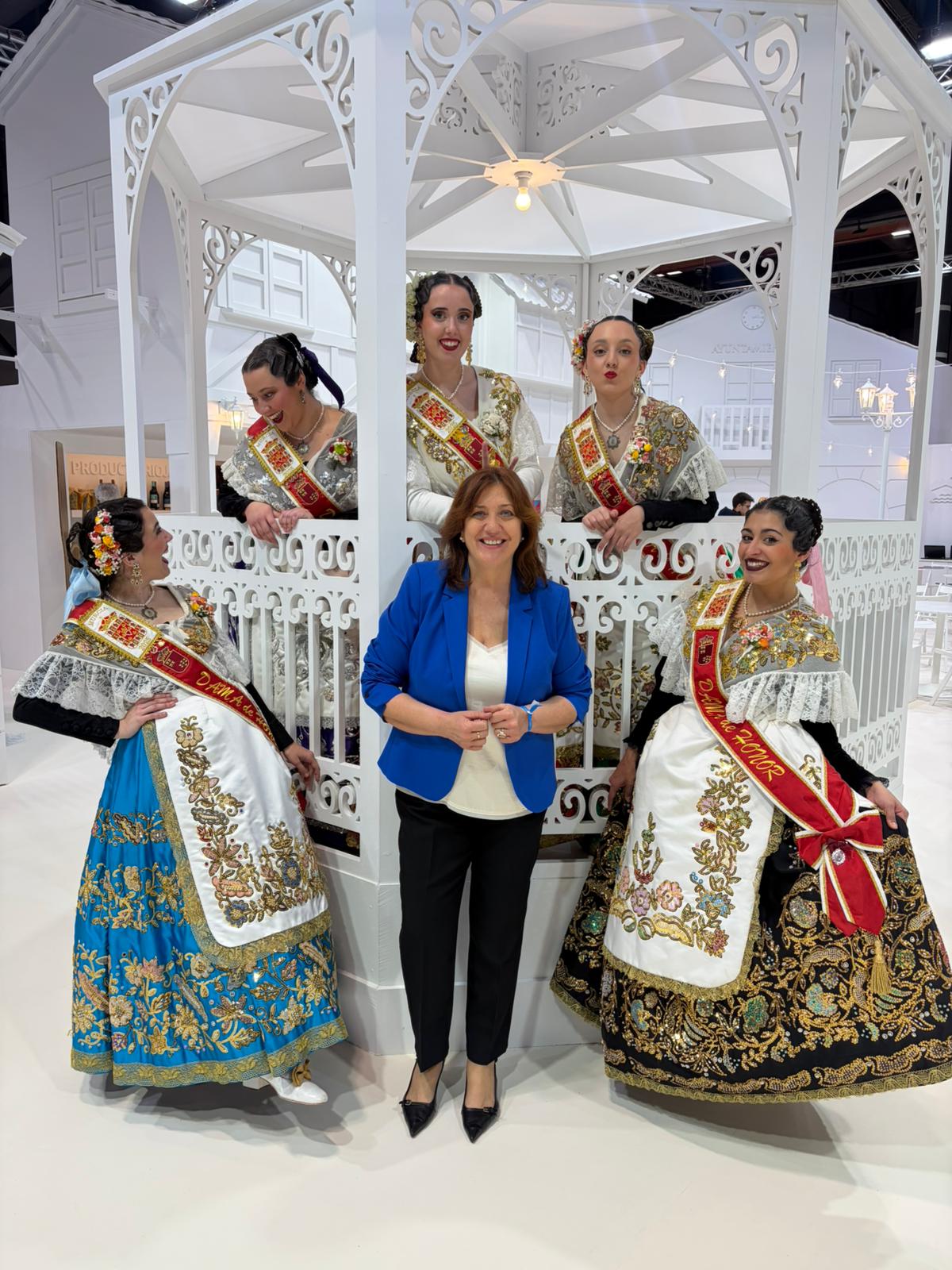 La Federación de Peñas Huertanas de la Región de Murcia (FPHRM) ha protagonizado una de las presencias más impactantes del “Día de Murcia” en FITUR 2026, la Feria Internacional de Turismo celebrada en Madrid. Con una representación encabezada por la vicepresidenta de la Federación, Fuensanta Martínez, y acompañada por la Reina de la Huerta de Murcia, Alba Franco, junto a sus Damas de Honor —Alicia de Sande, Noelia Hernández, Silvia Sánchez y Carmen Lacarcel—, la delegación murciana ha desplegado con orgullo los colores, tejidos y simbolismos de la indumentaria huertana ante miles de visitantes y profesionales del sector.