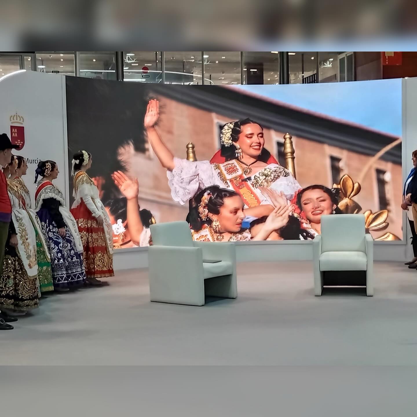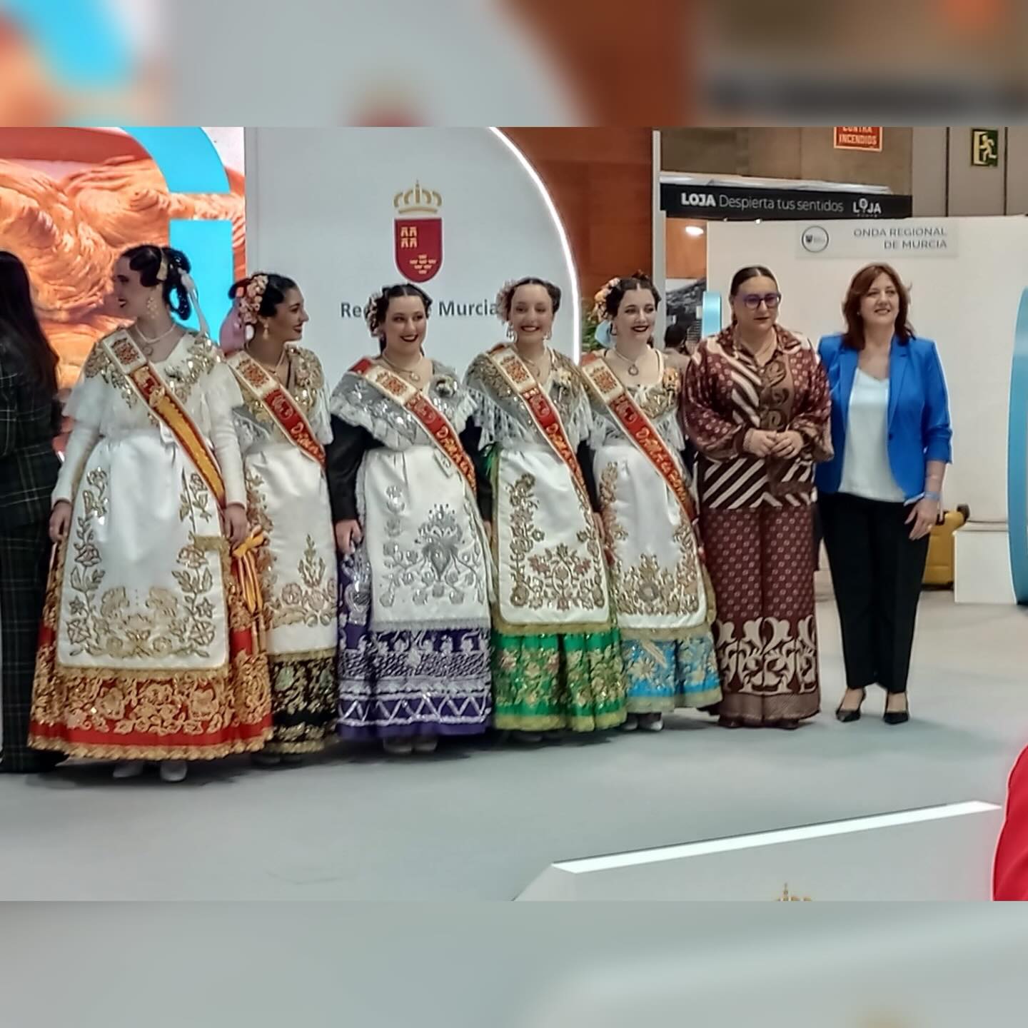Pero la influencia de la comitiva no se limitó a ese espacio: recorrieron numerosos pabellones de comunidades autónomas y países participantes, generando admiración allá donde pasaban. Los trajes, bordados con esmero y lucidos con elegancia y solemnidad, se convirtieron en auténticos embajadores visuales de la identidad murciana.