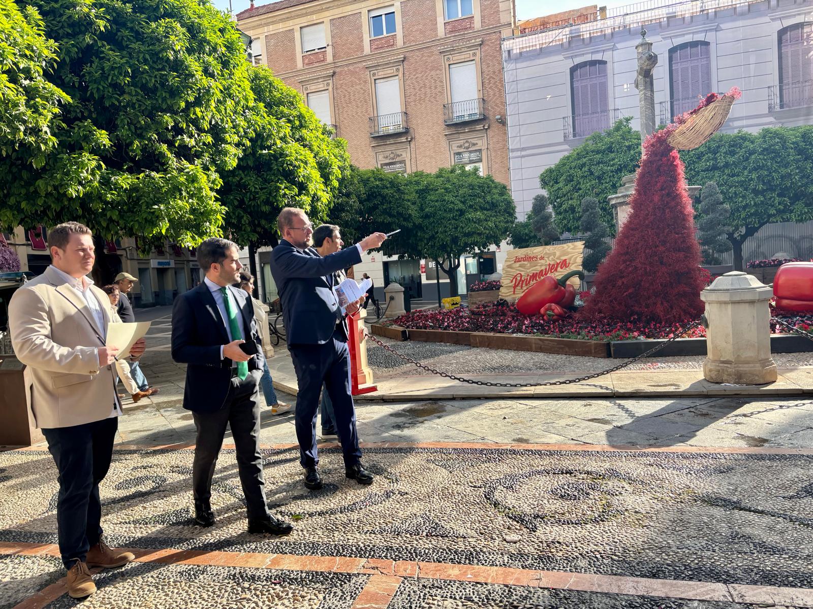 En este sentido, ha apuntado, «esta iniciativa está muy vinculada con nuestras raíces, con esa primigenia Batalla de las Flores, con esa construcción de carrozas en las principales plazas de la ciudad y, a raíz de ello, pues esta tradición tan murciana ha evolucionado hasta estas estructuras florales que encontramos en nuestras principales ubicaciones, plazas y calles, por todo el centro de nuestra ciudad. En concreto, este año en 35 ubicaciones y, además, este año hemos convocado este primer concurso, en el que han participado artistas, arquitectos, ingenieros y floristas, han hecho propuestas artísticas muy especiales que se combinan con las producciones que ha acometido el Ayuntamiento de Murcia».