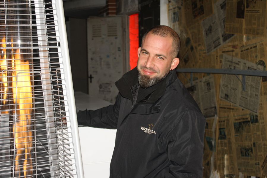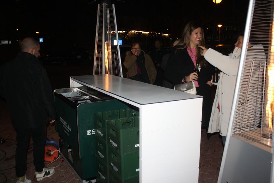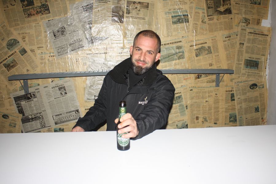 Y, a las puertas del nuevo local, el stand de Estrella de Levante con Nacho al mando, sirviendo frescos quintos de cerveza.