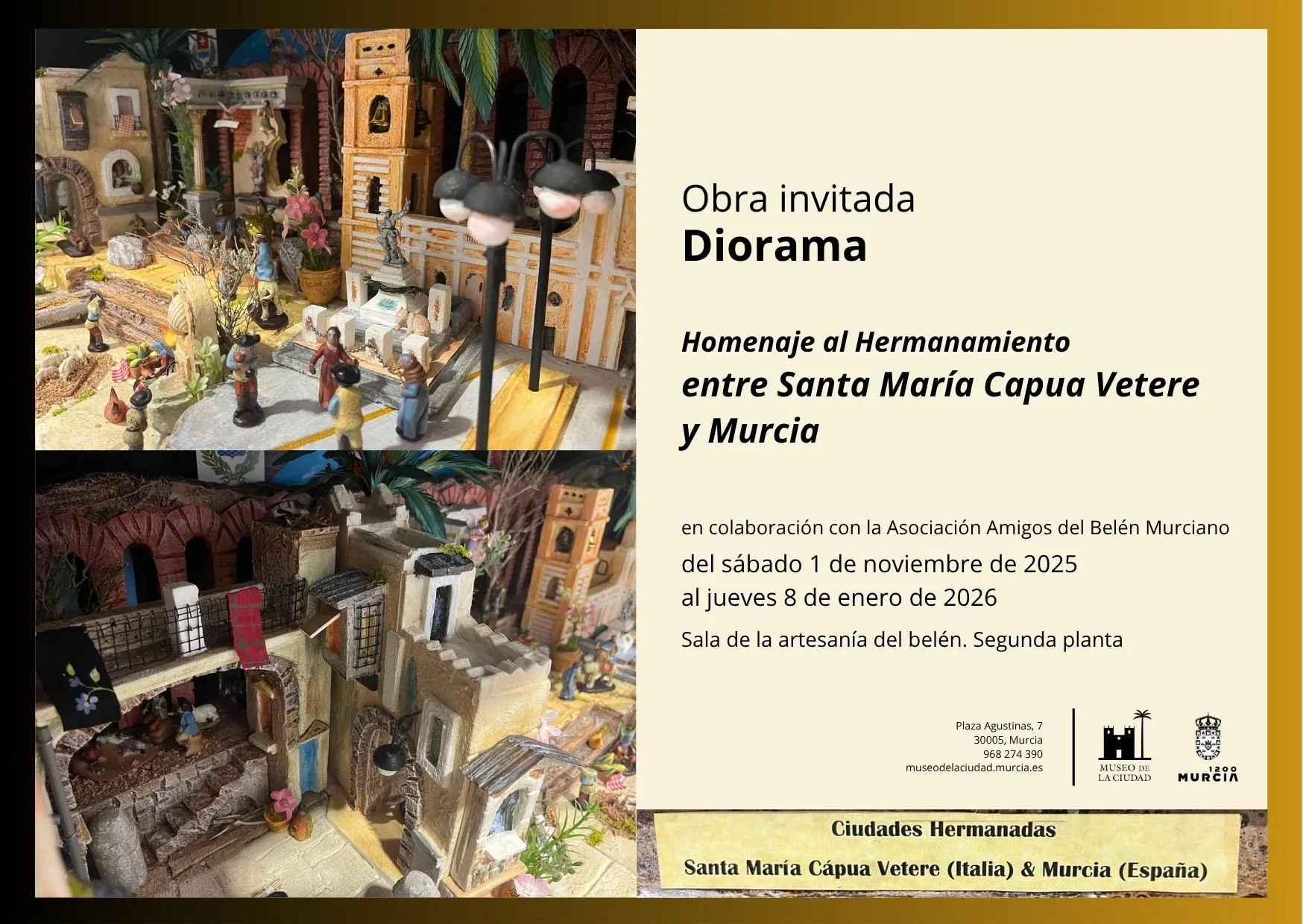 A mediodía, el centro de atención se desplazó al Museo de la Ciudad, donde se inauguró —como novedad absoluta— la microexposición “Diorama. Nacimiento morisco” (hasta el 4 de enero), un homenaje visual y simbólico al legado andalusí de la Región. En un espacio reducido pero cargado de evocación, el visitante encontrará una recreación delicada del nacimiento de Jesús en un entorno de alquería murciana del siglo XIII: arcos de herradura, techos de cañizo, tinajas de barro, y figuras vestidas con almalafas y turbantes, inspiradas en hallazgos arqueológicos locales. La pieza, realizada por Manuel Fuentes en colaboración con la Asociación de Amigos del Belén Murciano, dialoga con el ya conocido Diorama de Hermanamiento con Santa María Cápua Vetere, reforzando el discurso del museo sobre Murcia como ciudad de encuentro.