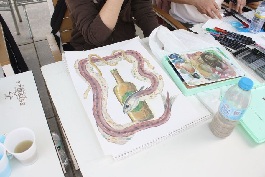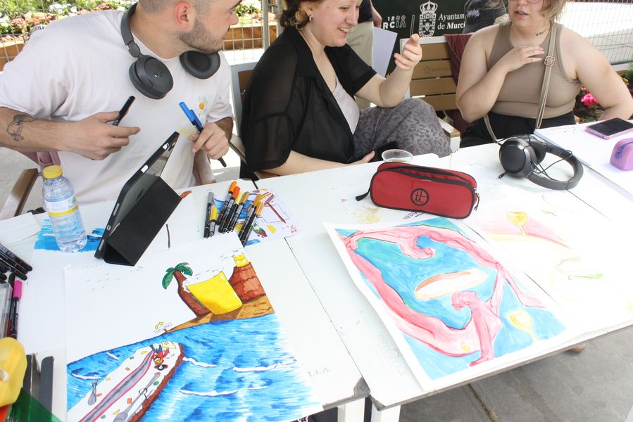 El evento arrancó a las 10:00 horas con una propuesta que fusionó arte y tradición: el concurso de dibujo organizado por la Escuela de Arte de la Región de Murcia. Treinta y dos estudiantes dispusieron de tres horas para plasmar sobre el lienzo su visión de la marinera, en un certamen que trascendió lo competitivo para convertirse en un taller de creación a cielo abierto.