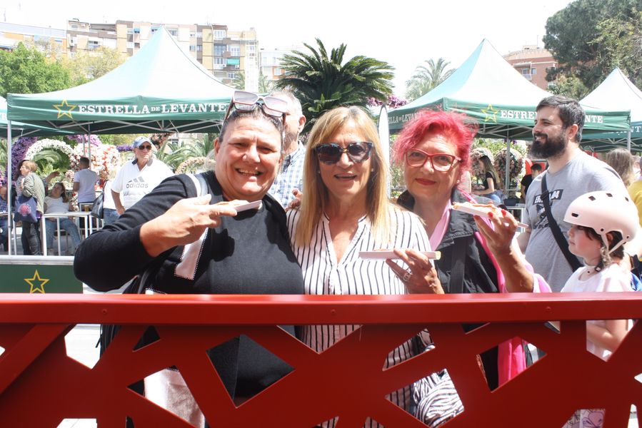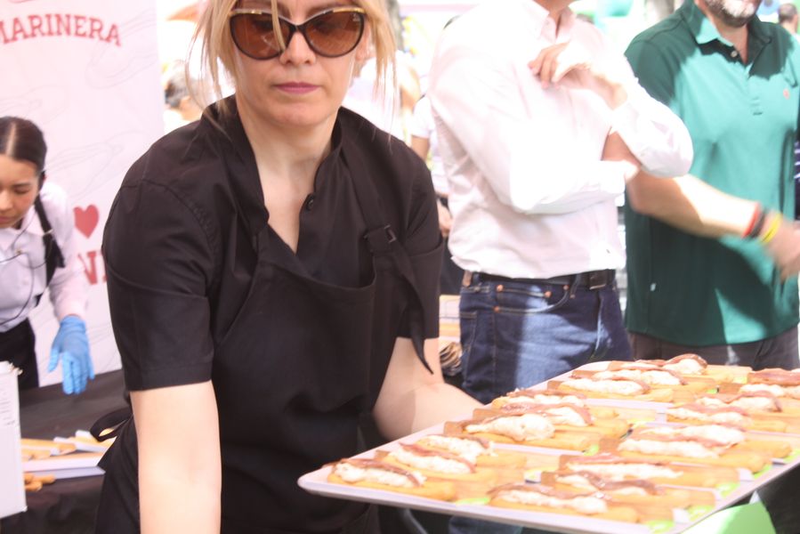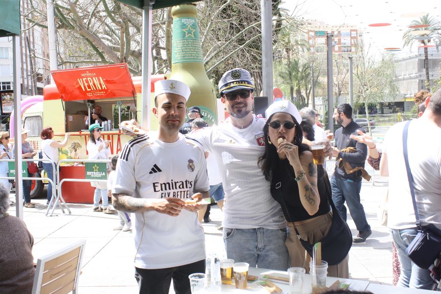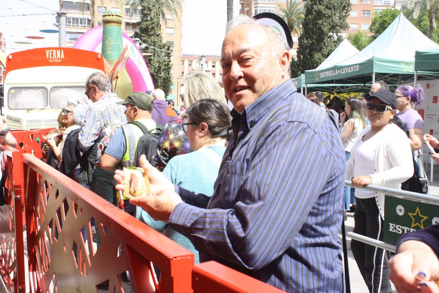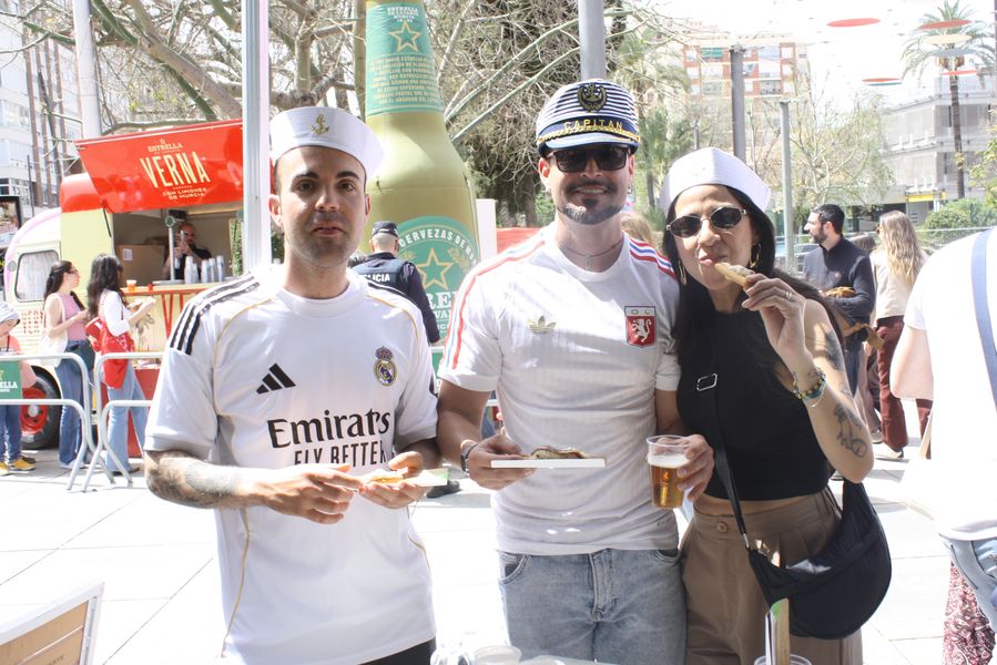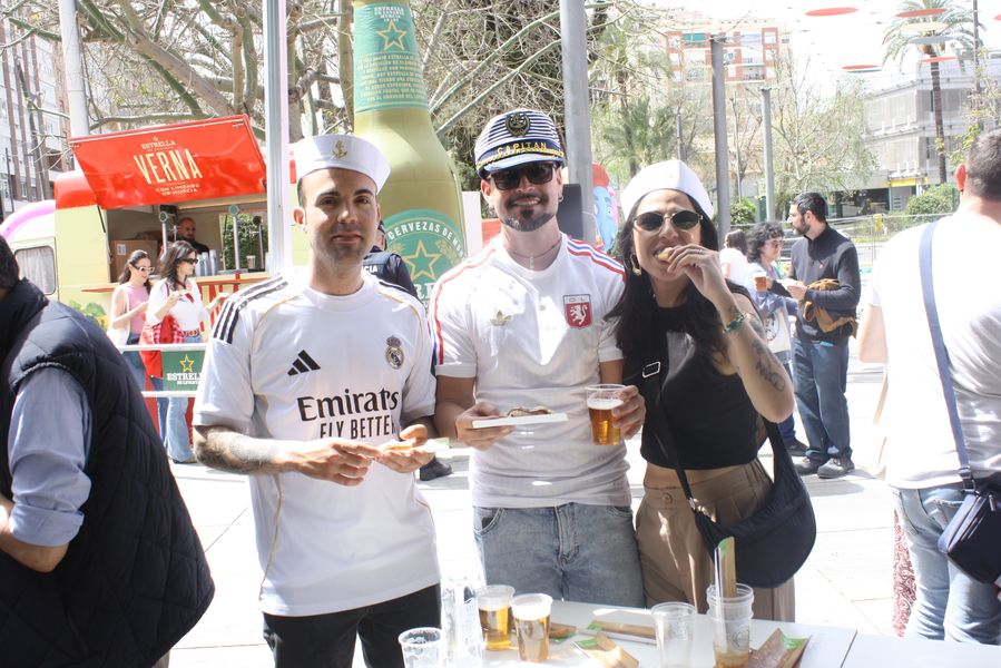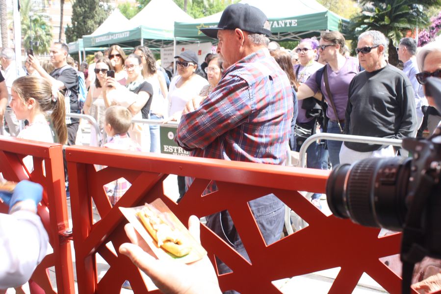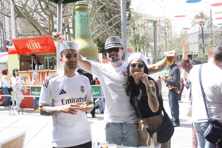 A partir de las 13:00 horas llegó el momento más esperado: la degustación popular. Nueva Cocina Mediterránea y Estrella de Levante se encargaron de servir las más de 2.000 marineras gratuitas, acompañadas de cañas de la cervecera murciana. Las largas colas que se formaron en la plaza reflejaron el arraigo de esta tapa, que trasciende lo gastronómico para erigirse en símbolo de identidad regional. Entre los asistentes pudimos encontrar rostros conocidos como los de Los Happys y el presentador de televisión, Antonio Hidalgo, o los monologistas Javi Chou y Jaime Caravaca.