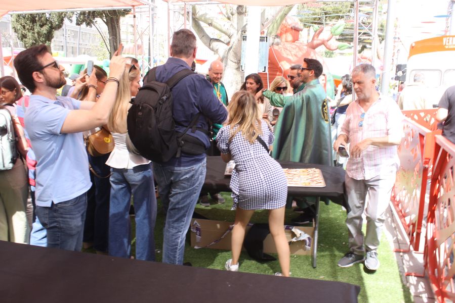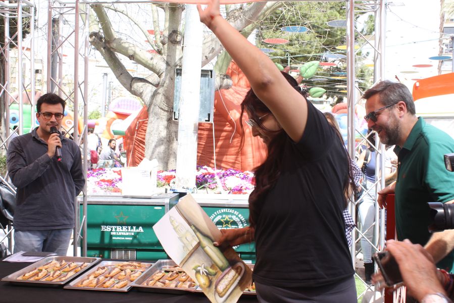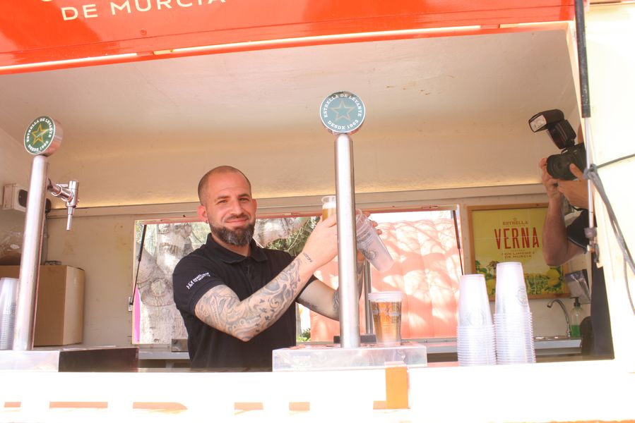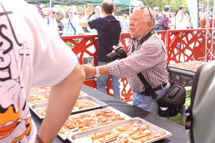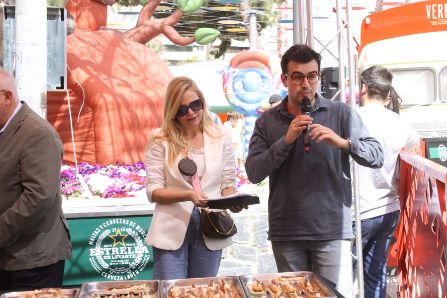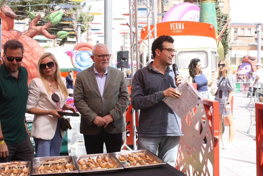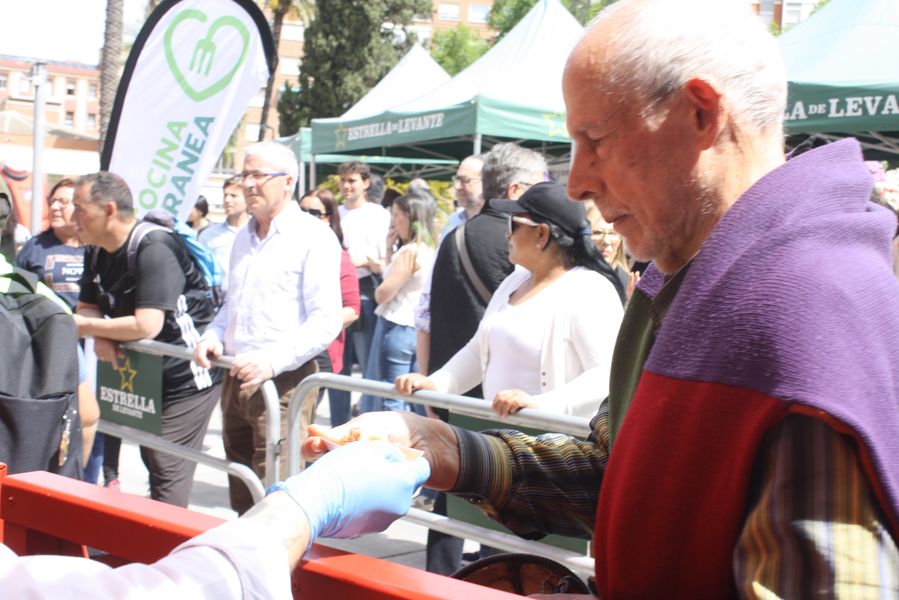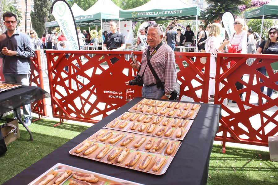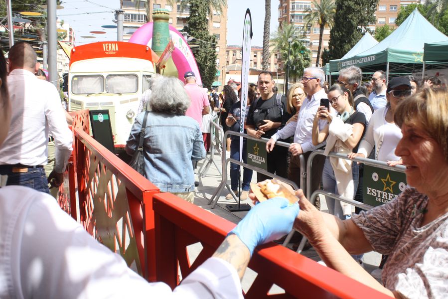 A partir de las 13:00 horas llegó el momento más esperado: la degustación popular. Nueva Cocina Mediterránea y Estrella de Levante se encargaron de servir las más de 2.000 marineras gratuitas, acompañadas de cañas de la cervecera murciana. Las largas colas que se formaron en la plaza reflejaron el arraigo de esta tapa, que trasciende lo gastronómico para erigirse en símbolo de identidad regional. Entre los asistentes pudimos encontrar rostros conocidos como los de Los Happys y el presentador de televisión, Antonio Hidalgo, o los monologistas Javi Chou y Jaime Caravaca.