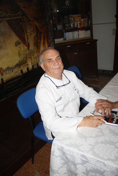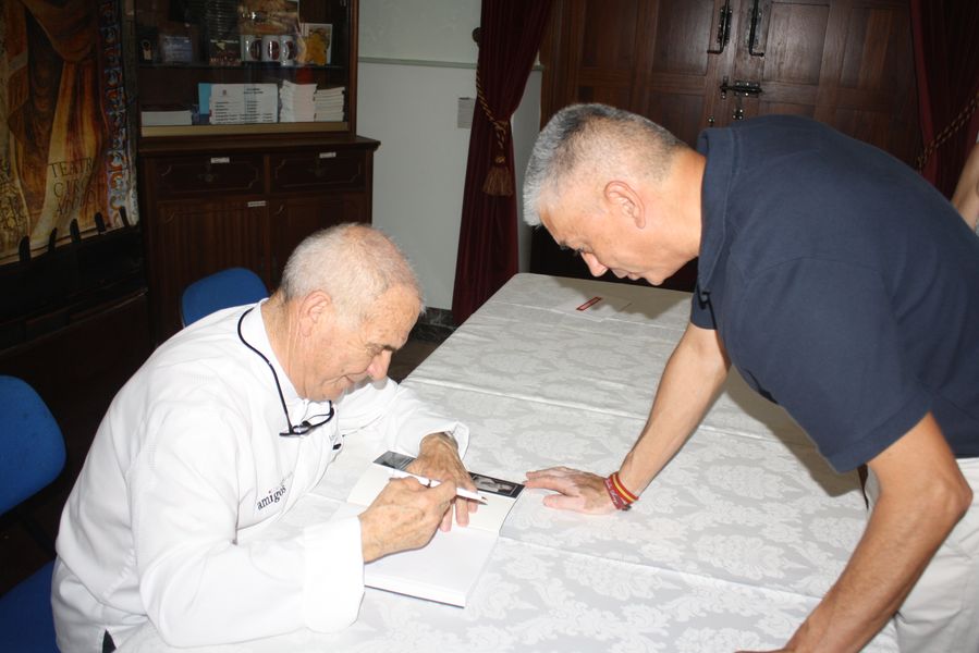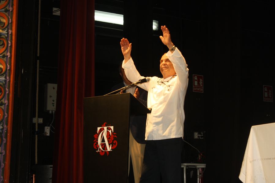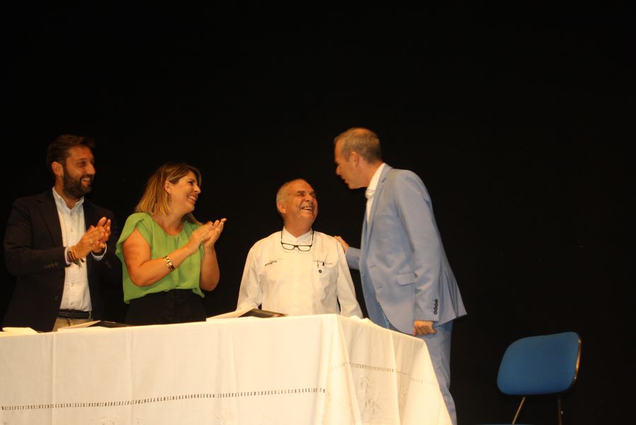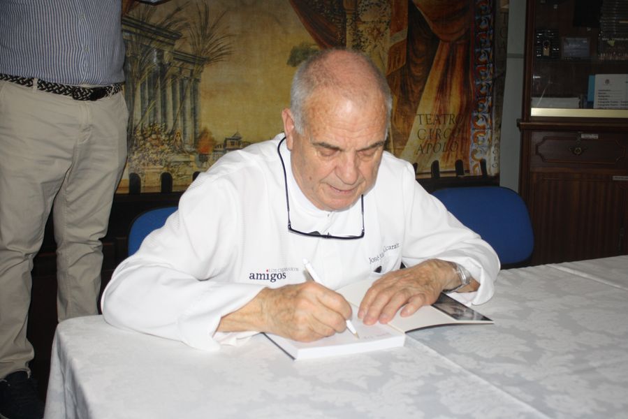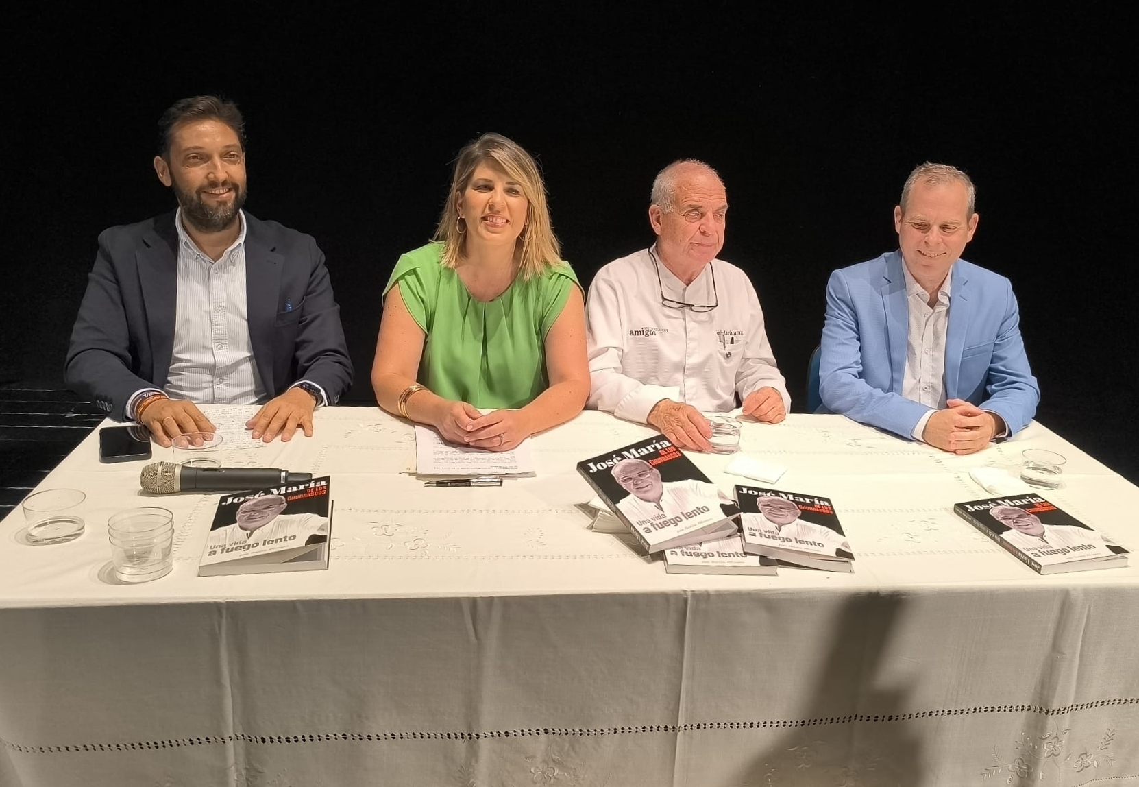 El veterano chef presentó el libro de su vida ‘A fuego lento’, escrito por su hijo Benito Alcaraz, en un repleto Teatro Apolo de El Algar