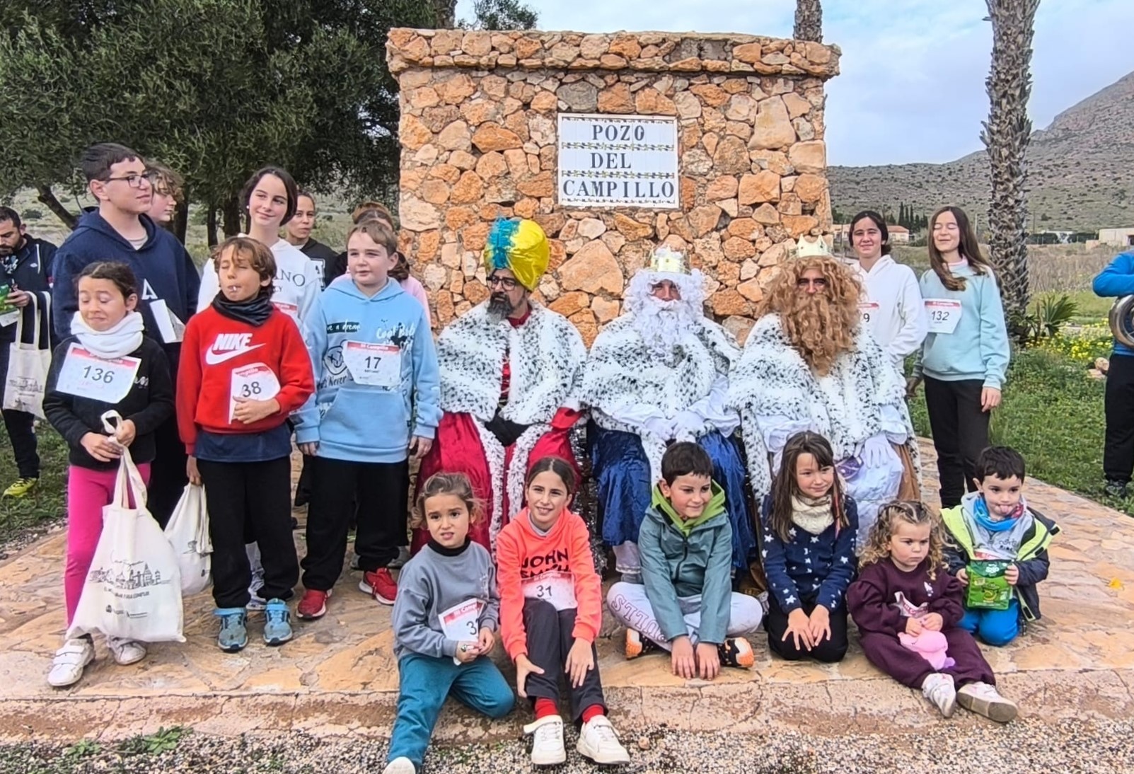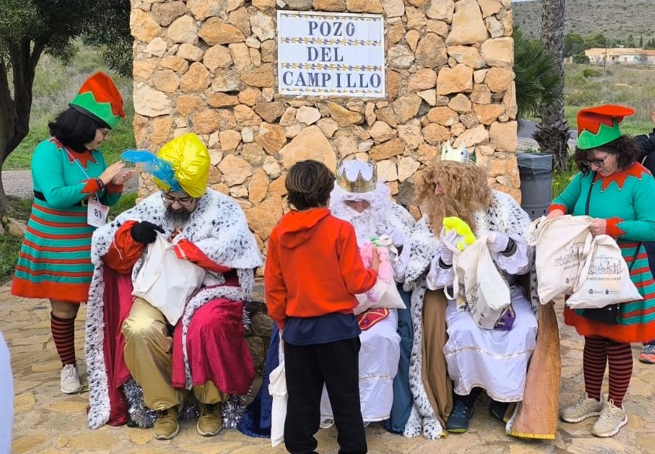 Al llegar al histórico ‘Pozo del Campillo’ se hizo una parada donde los Reyes Magos asistidos por sus pajes entregaron a los participantes sus respectivas medallas y bolsas con bebidas, barras energéticas y golosinas variadas.