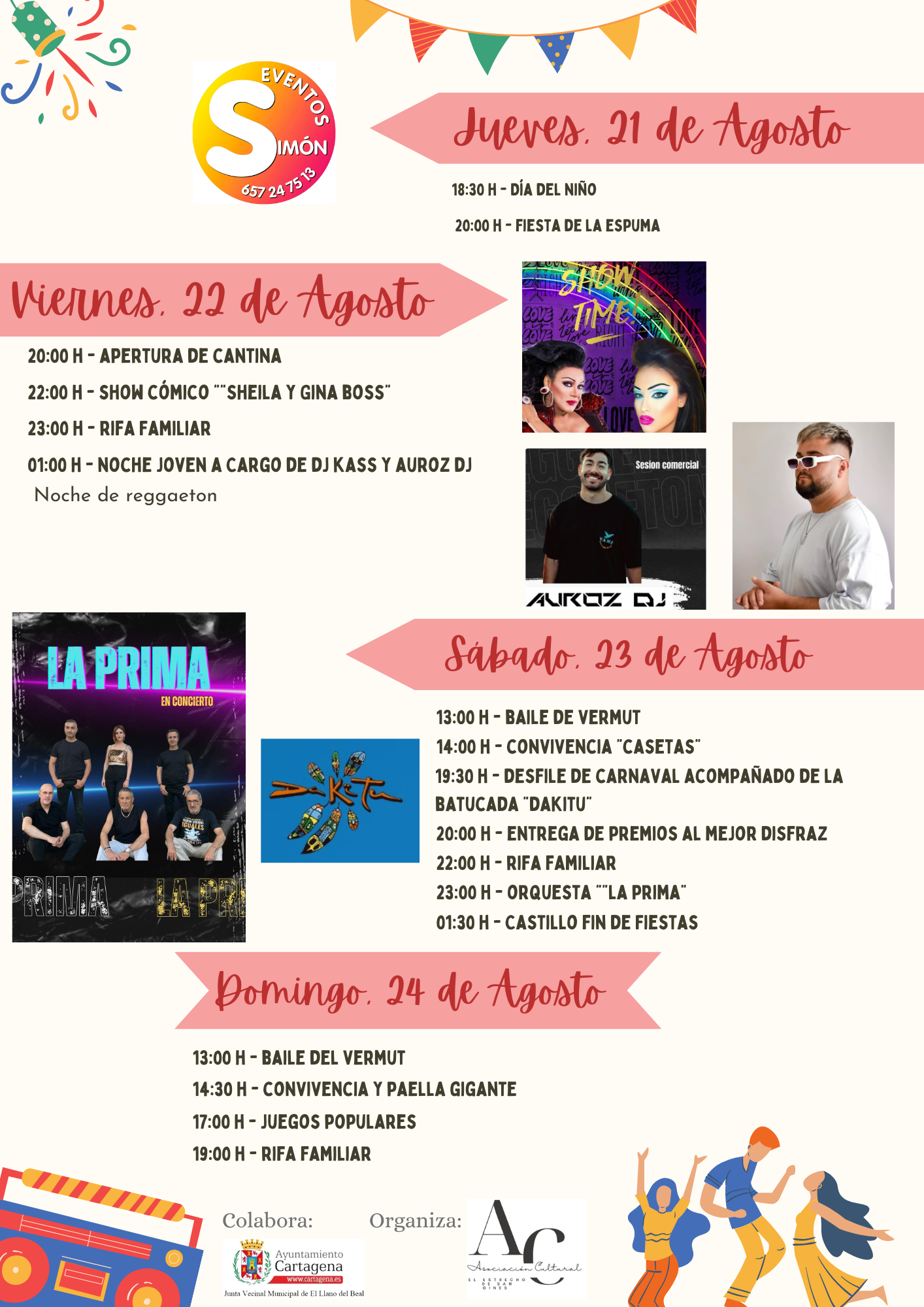 Llega el mes de agosto y Cartagena se viste de fiesta popular en los barrios y diputaciones, que celebran un amplio programa de actividades en honor a sus patrones. Las asociaciones de vecinos, en colaboración con el Ayuntamiento, han diseñado diferentes actividades para toda la familia, incluyendo actuaciones musicales, romerías o degustaciones gastronómicas gratuitas.