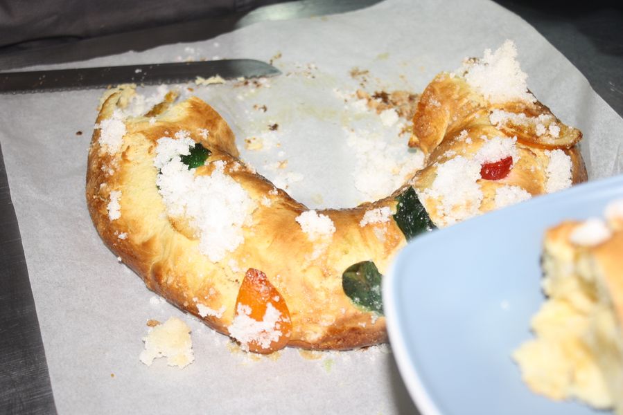 • Sorpresa tradicional: 1 haba seca (envuelta en papel comestible si se desea) y 1 figurita de porcelana o plástico alimentario (el “rey”)