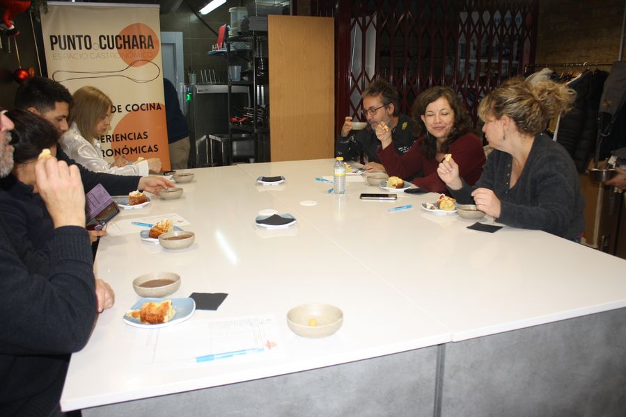 Al final, tras el horneado perfecto y el glaseado brillante, llegó el momento más esperado: la degustación. Sentados en torno a la Mesa Cero, los ocho comensales probaron su roscón —el que habían creado con sus propias manos—. Nadie lo cortó con cuchillo. Todos lo partieron con las manos, como manda la costumbre más antigua. Y en ese gesto colectivo, simple y profundo, se cumplió la máxima de Punto Cuchara: la gastronomía no se mira. Se vive.