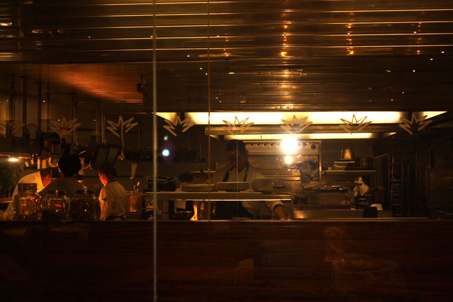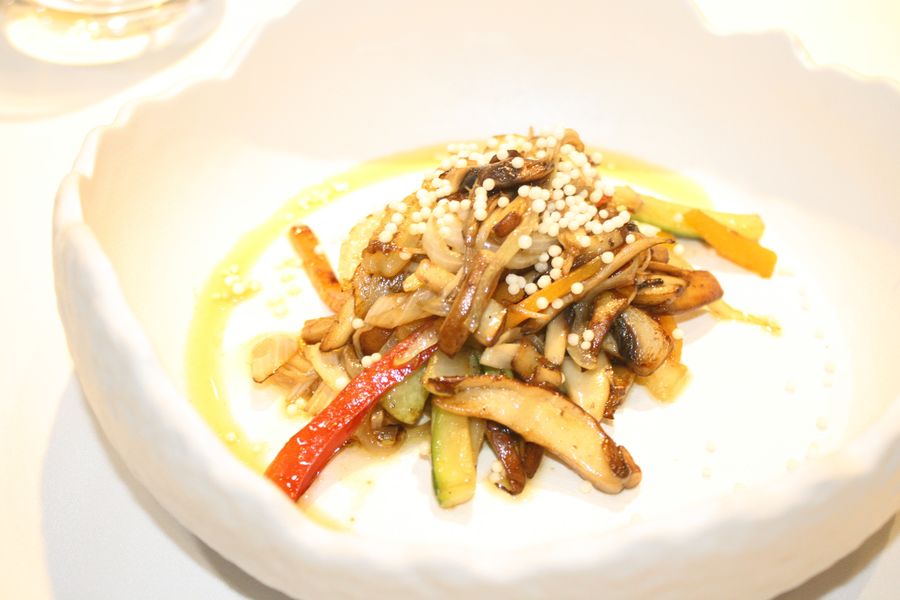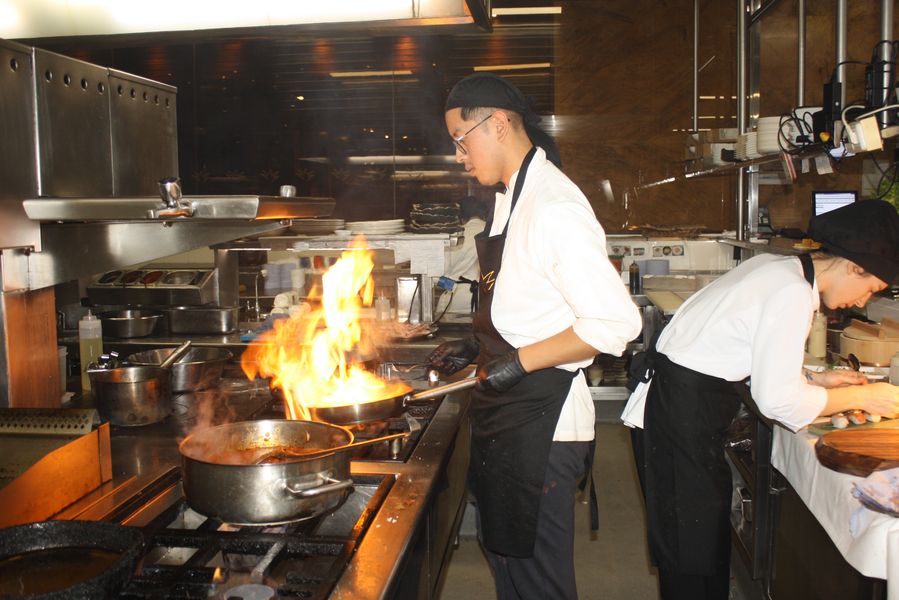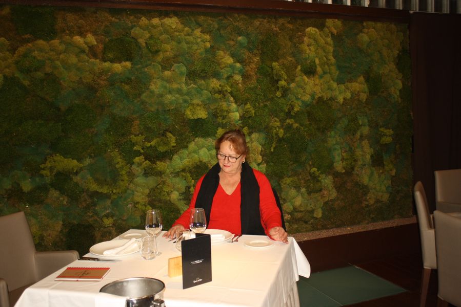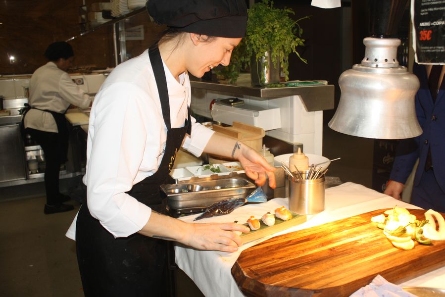LasGastrocronicas.com tuvo la oportunidad de degustarlo en el salón tradicional —ese espacio forrado de madera noble, con óleos de gambas rojas y nenúfares, y el gran jardín vertical que respira vida—, aunque la esencia del Canalla late más fuerte en la barra, con sus 28 comensales y el bullicio de una cocina a la vista que, desde 1971, sigue siendo una de las primeras y más admiradas de España.