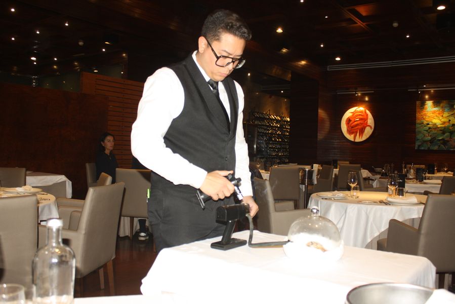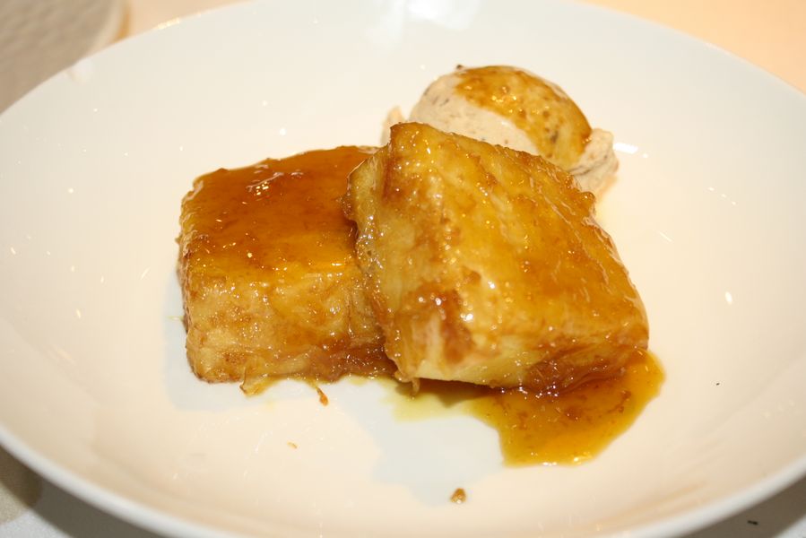 De postre, un clásico reinventado: leche frita flambeada al momento, servida con helado de turrón —crisp, cremoso, cálido, frío—, un abrazo sensorial que cierra el menú con nostalgia y modernidad.