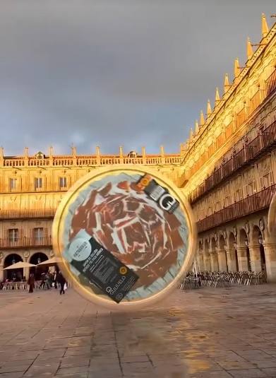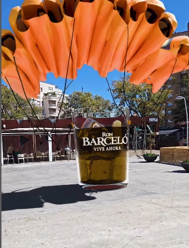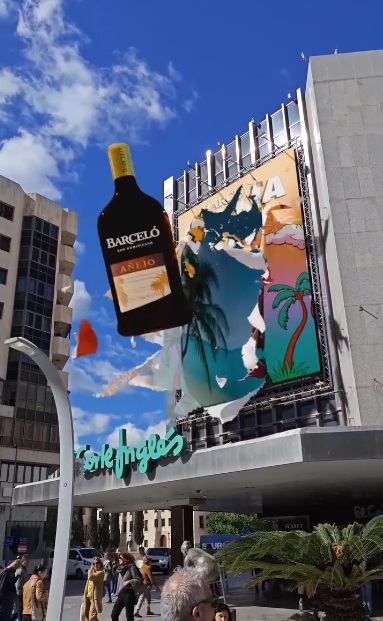 «Busco vídeos de impacto que llamen la atención», explica en una entrevista exclusiva para LasGastrocronicas.com. Y lo logra: sus reels —desde 200 € los más sencillos hasta más de 1.000 € según complejidad— no solo muestran un producto, sino que lo narran, lo dotan de personalidad, incluso de heroísmo. «Me llaman ‘el de las lonas’», confiesa con una sonrisa, refiriéndose a su técnica distintiva: proyectar digitalmente grandes mantas publicitarias sobre edificios reales, creando ilusiones ópticas que se viralizan al instante.