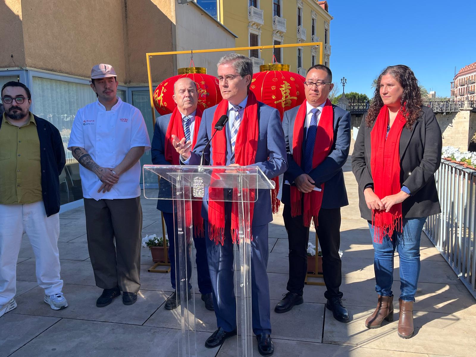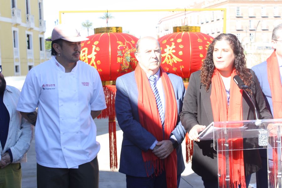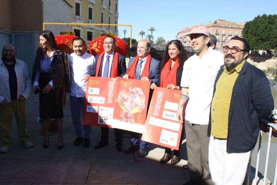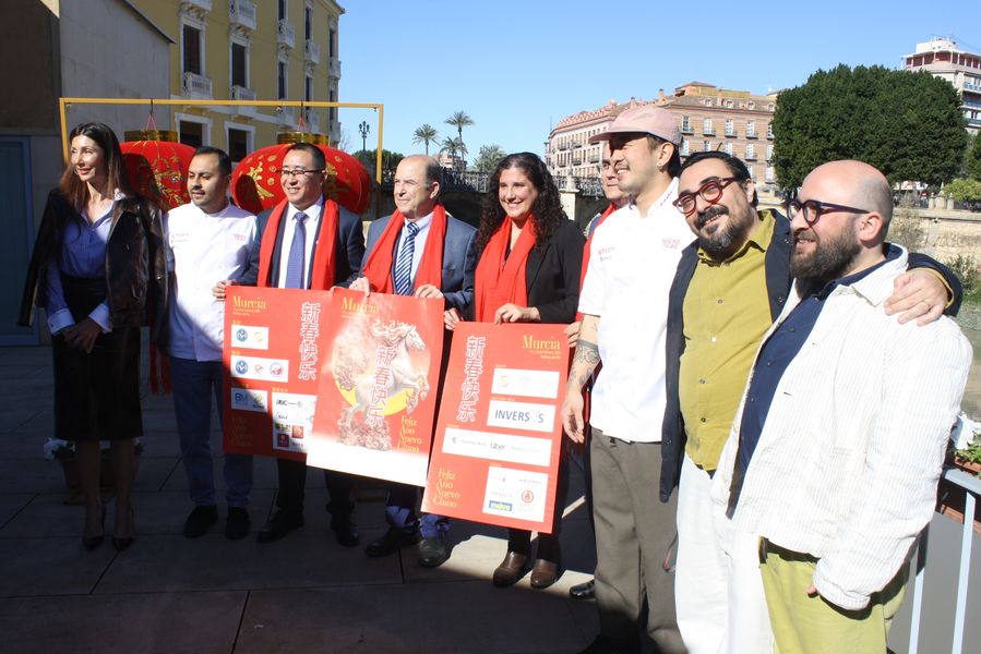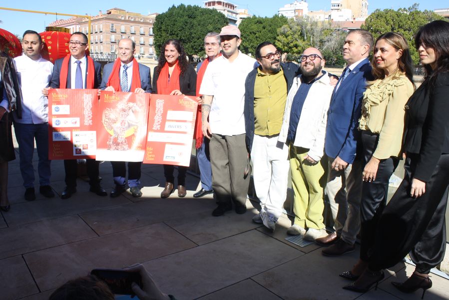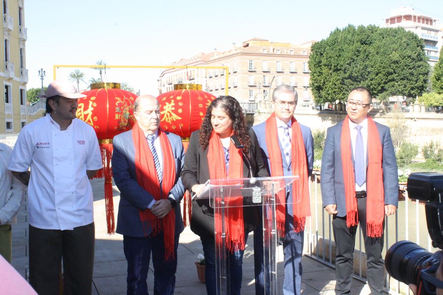 La iniciativa ha sido presentada por el concejal de Turismo, Comercio y Consumo, Jesús Pacheco, y la concejal de Talento Joven y Espacios Públicos, Sofía López-Briones, acompañados de los organizadores, Jie Lin Wu, del restaurante Madre Tigre; Limin Liu, de la Asociación de Empresarios Chinos en la Región de Murcia y de Alejandro García y José Ángel Cuenca, de la agencia Casa Jaleos.