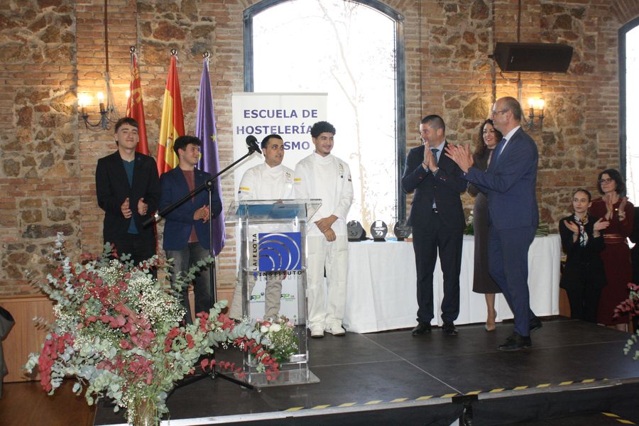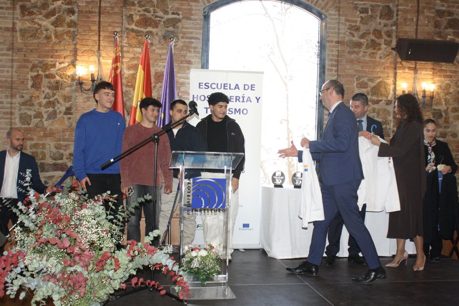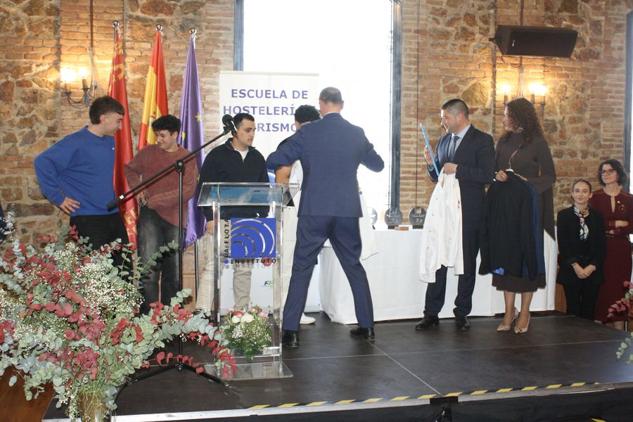 Pero fueron los gestos los que escribieron la crónica más auténtica: la entrega de distinciones a empresas colaboradoras como Estrella de Levante, José Díaz, Makro, Rational y Sercotel Amistad; el reconocimiento emocionado a la profesora Cristina Gómez Esplá, treinta años forjando panaderos, pasteleros y cocineros con la misma pasión del primer día; y el momento culminante en que cuatro alumnos —Diego Martínez, Mohamed Ghaghi, Daniel Pérez y Nahuel Carmona— recibieron sus chaquetillas blancas antes de partir a Madrid para representar a la Región en las olimpiadas SpainSkills’26.