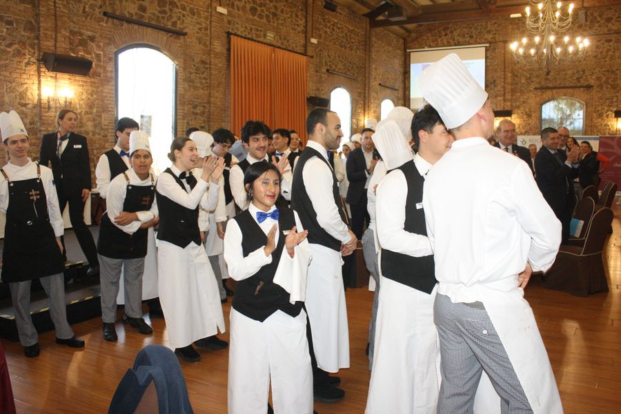 Marín destacó cifras elocuentes: las 1.200 plazas anuales que oferta la Comunidad para FP en hostelería y turismo, la empleabilidad del 80 % de los egresados y el descenso del 11 % en el paro interanual de este colectivo.