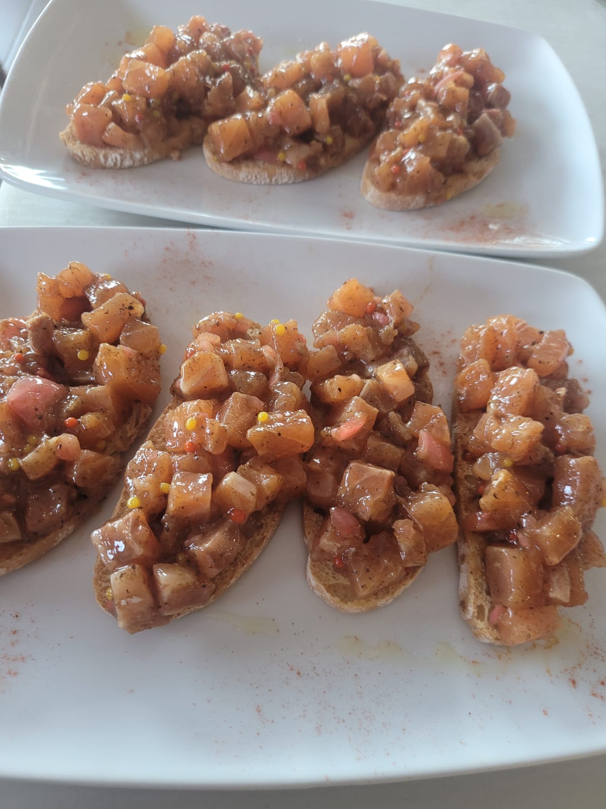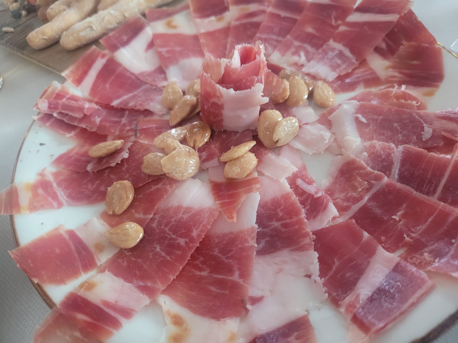 La comitiva degustó jamón ibérico con almendras y tostadas de tartar de atún rojo, tomate y anchoa.