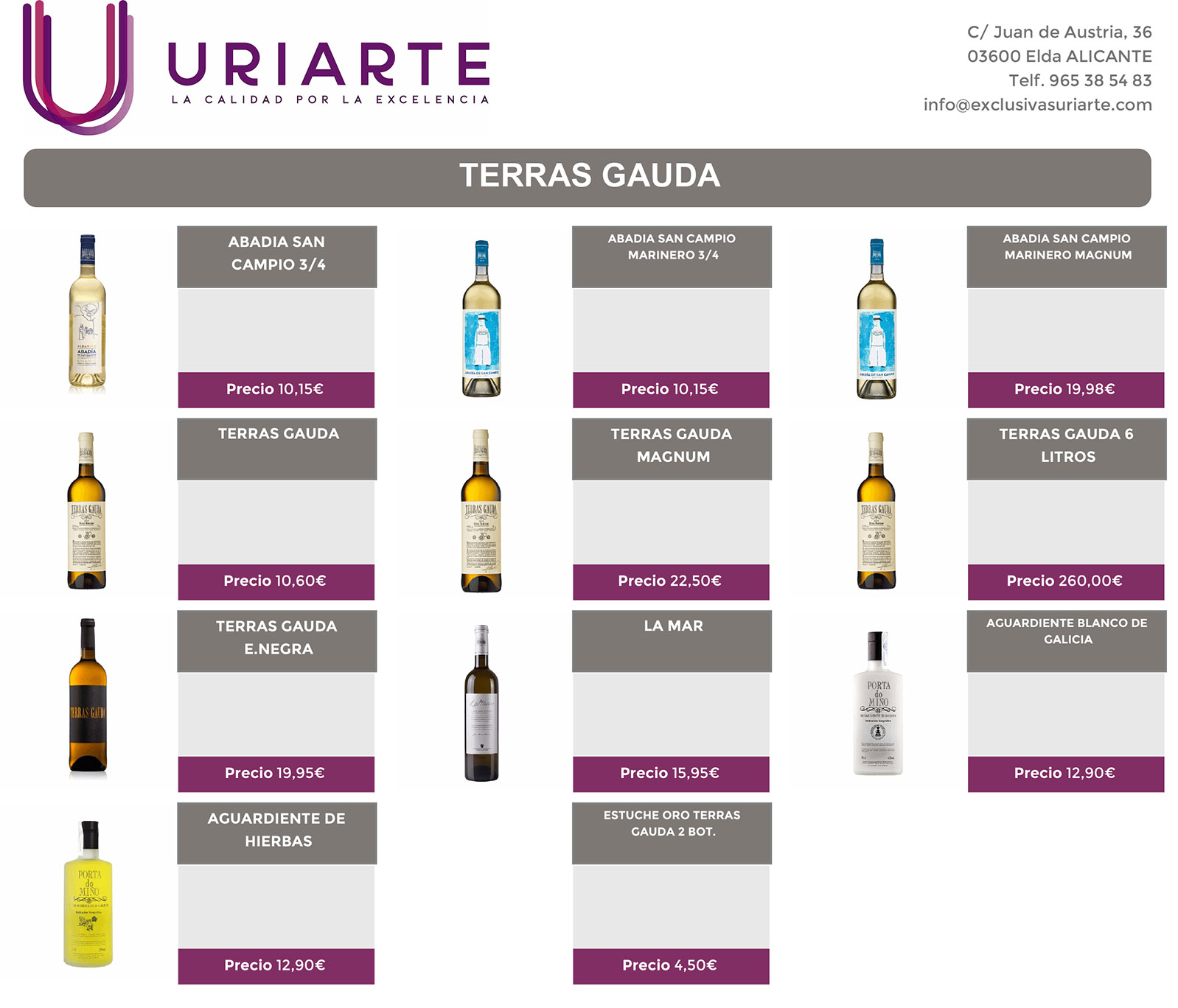 Fundada sobre los pilares de una tradición familiar que se remonta a un pequeño ultramarinos en Labastida (Álava) en 1890, Uriarte ha evolucionado hasta convertirse en una referencia en la distribución de vinos y alimentación de alta gama en el sureste peninsular. Su filosofía, centrada en la “calidad por la excelencia”, se refleja tanto en la cuidadosa selección de sus marcas como en el trato personalizado que ofrece a cada cliente.