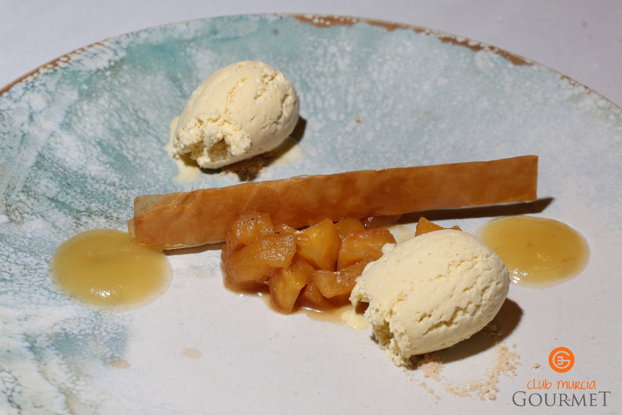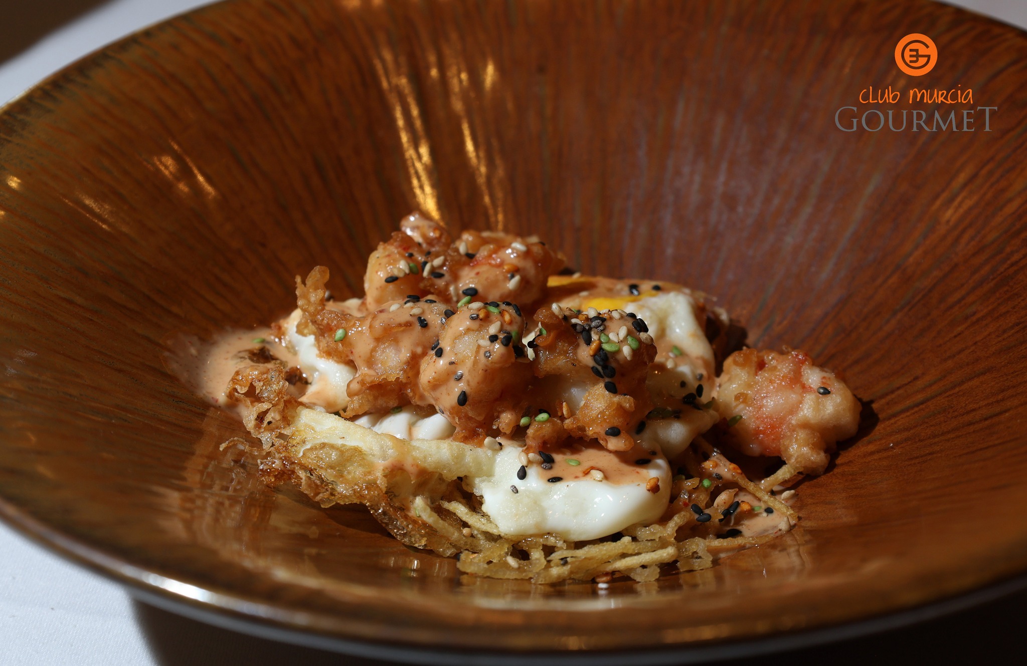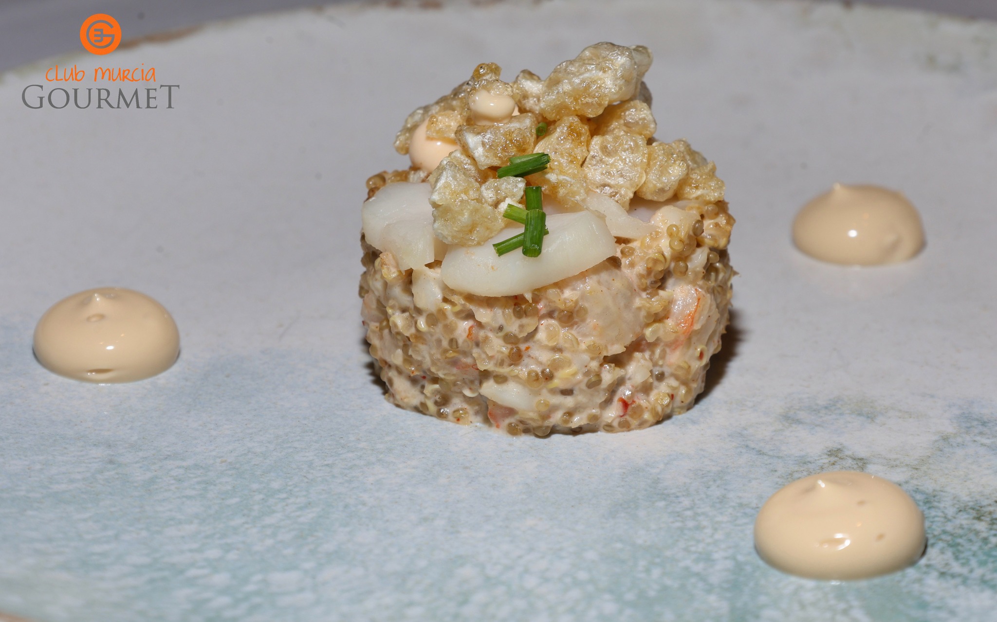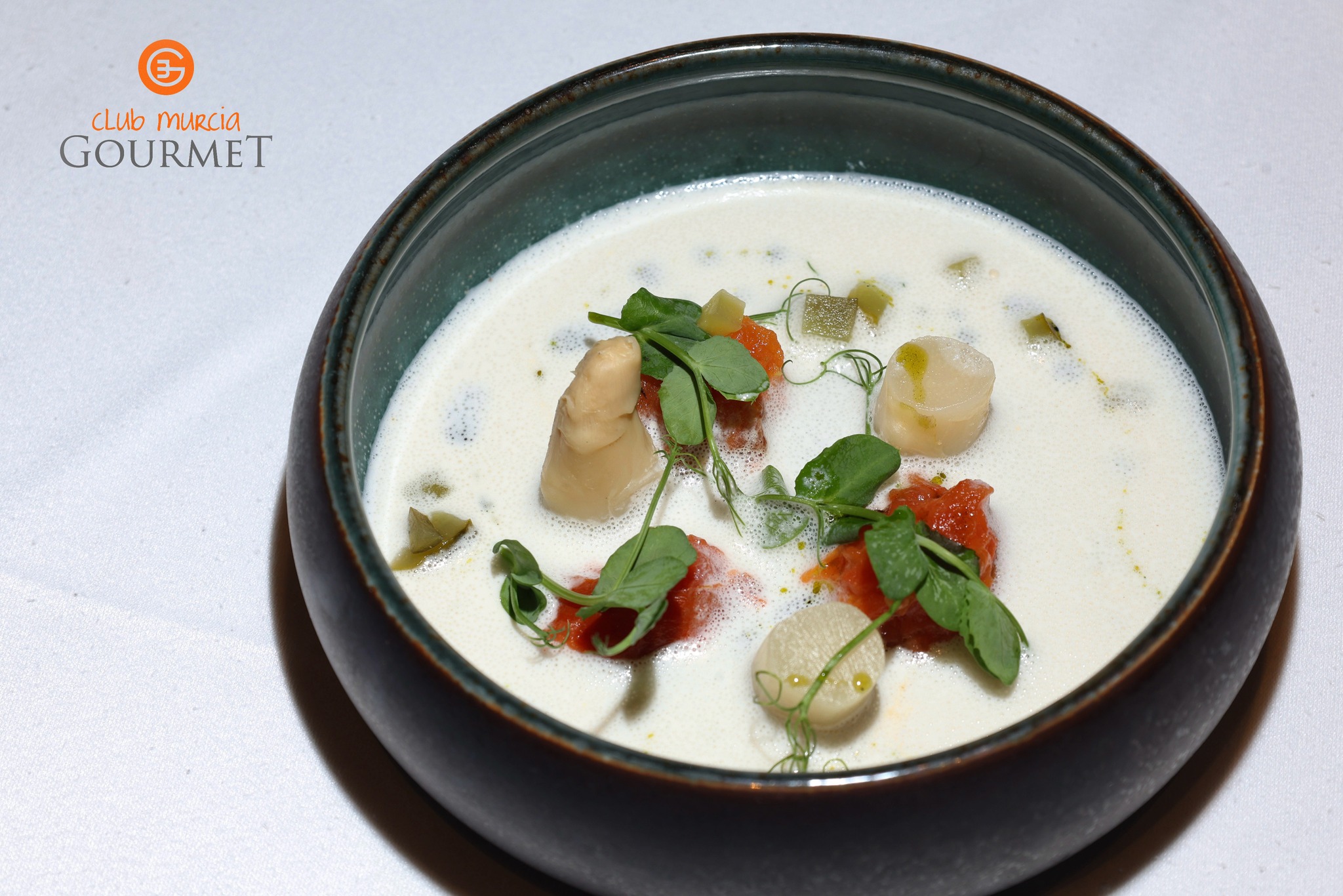 Durante la velada, los socios pudieron degustar un menú de concurso que rindió homenaje al producto local, maridado con vinos de la tierra como un Rosado Ecológico Castaño (D.O. Yecla) o un tinto Cuesta de los Chotos (D.O. Jumilla), demostrando la versatilidad de la bodega murciana frente a platos como la gamba blanca tempurizada o el ravioli de cabrito lechal.