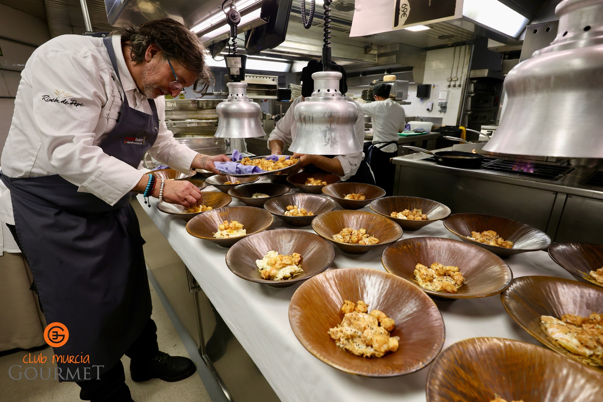 La cena de aniversario en Rincón de Pepe supuso un «volver a casa» en varios sentidos. Este establecimiento, que en 2025 celebró su propio centenario, es un emblema de la cocina tradicional murciana. Además, guarda un vínculo histórico con el club: fue en la cocina de Rincón de Pepe donde Raimundo González Frutos logró la primera Estrella Michelin para la Región de Murcia.