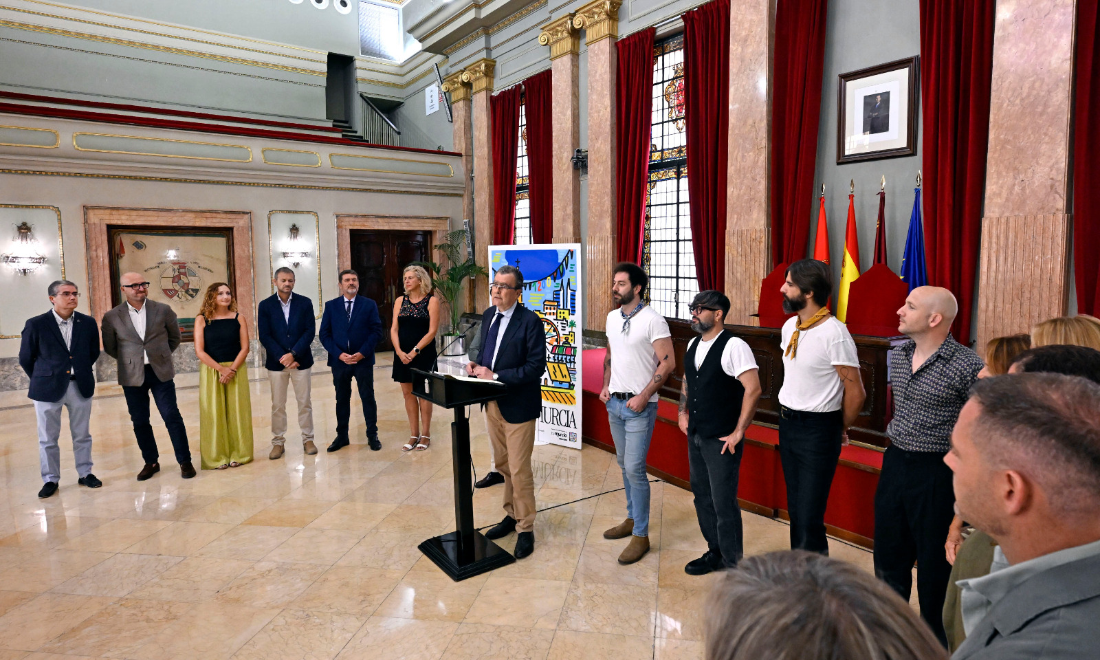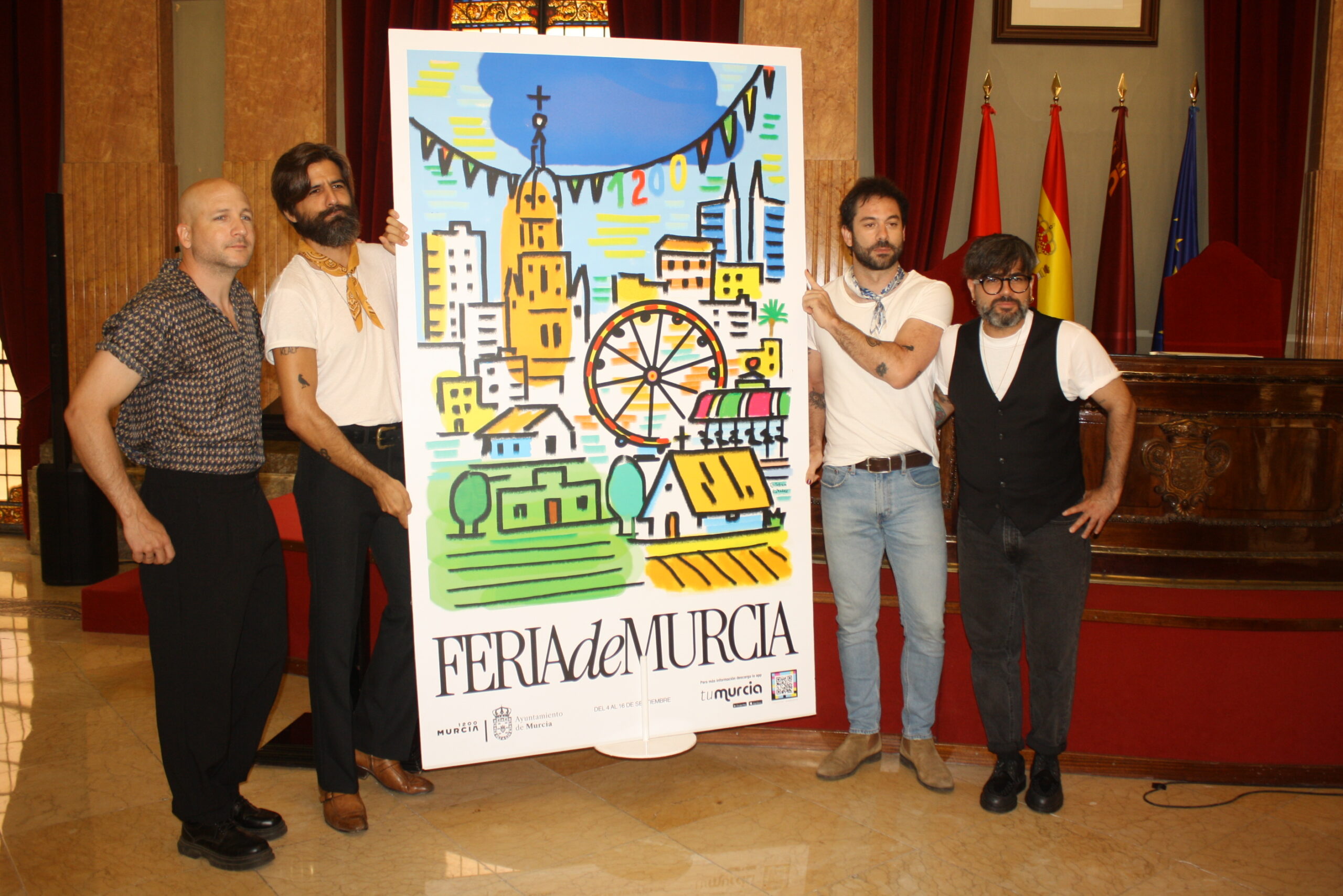 Murcia ya tiene pregonero para su Feria 2025: Viva Suecia. Así lo ha anunciado esta mañana el alcalde de Murcia, José Ballesta, acompañado por los integrantes de la banda Rafa Val, Alberto Cantúa, Jess Fabric y Fernando Campillo, que serán los encargados de poner voz y emoción al inicio de las fiestas de Murcia el próximo 7 de septiembre, a las 21:30 horas, desde la plaza del Cardenal Belluga.