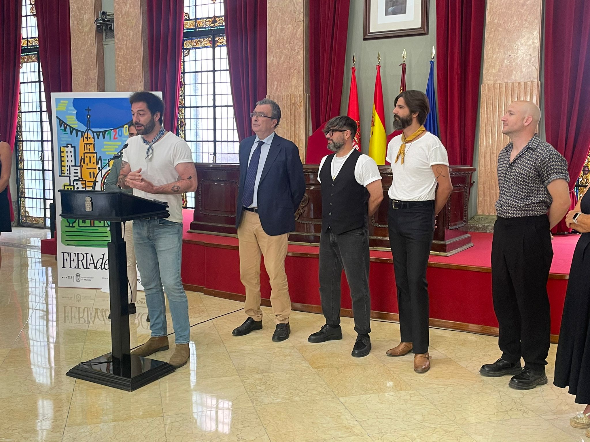 Murcia ya tiene pregonero para su Feria 2025: Viva Suecia. Así lo ha anunciado esta mañana el alcalde de Murcia, José Ballesta, acompañado por los integrantes de la banda Rafa Val, Alberto Cantúa, Jess Fabric y Fernando Campillo, que serán los encargados de poner voz y emoción al inicio de las fiestas de Murcia el próximo 7 de septiembre, a las 21:30 horas, desde la plaza del Cardenal Belluga.