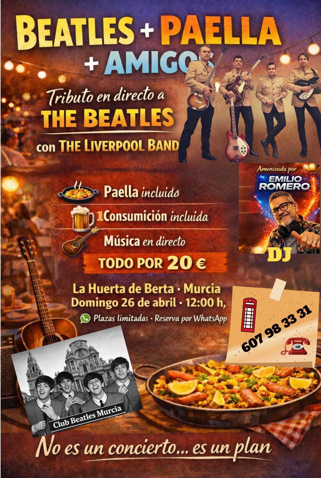 El Club Beatles Murcia teje un encuentro único en La Huerta de Berta donde la música de los Fab Four, la paella tradicional y la memoria compartida se funden en una propuesta que trasciende el concierto